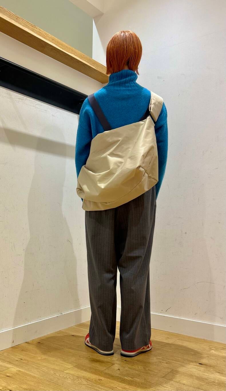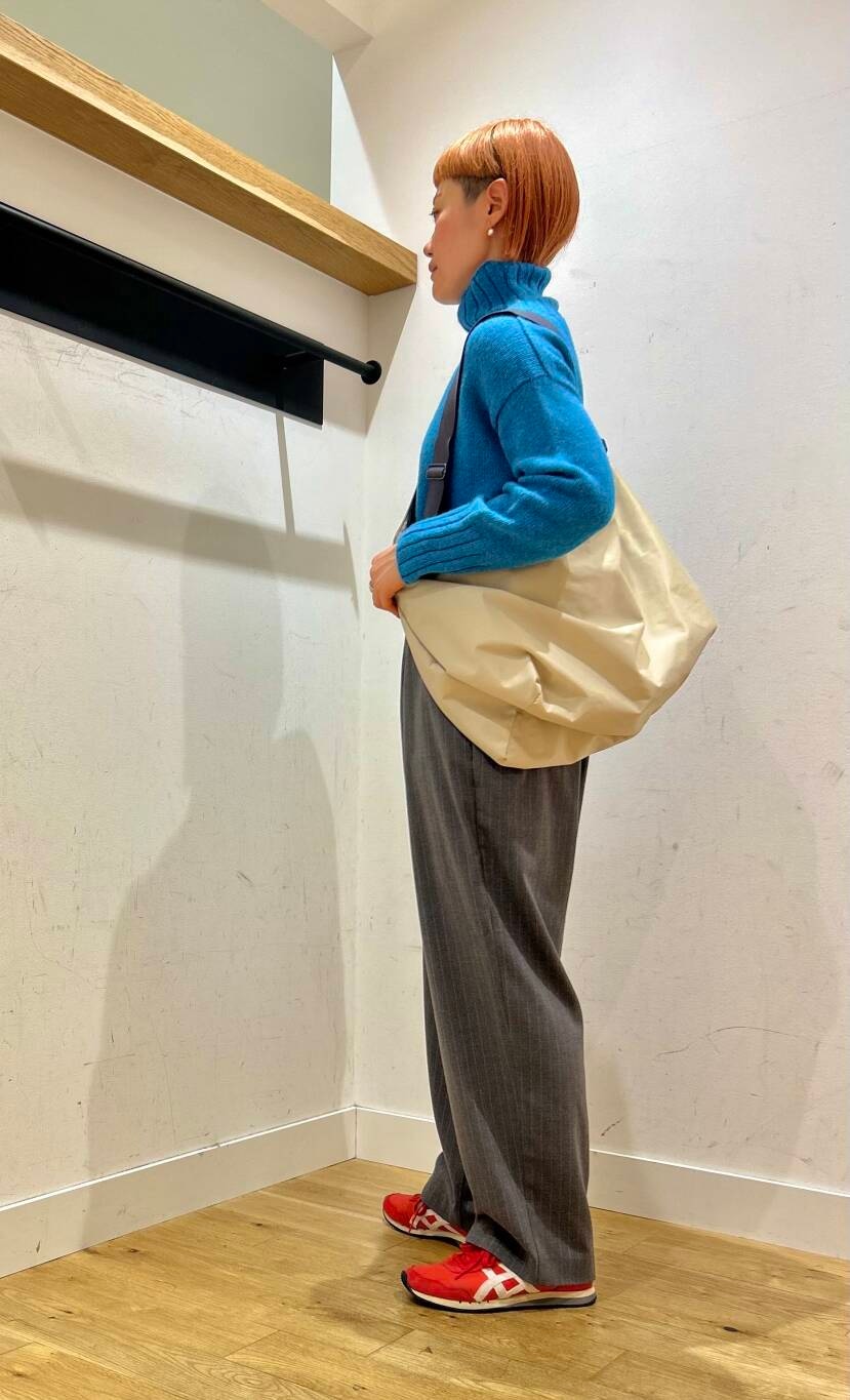 別注タートルネックニット着回し。サスペンダーコーデ。