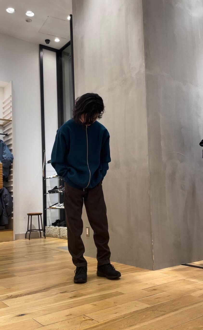 カーディガンは深みのあるブルーが目を引き、ジップを閉めても開けてカットソーを見せても様になってくれます。
