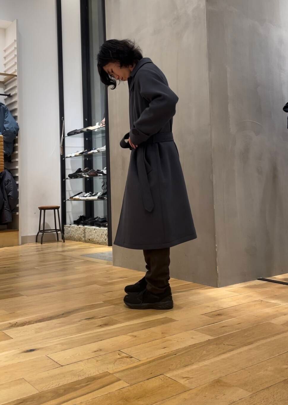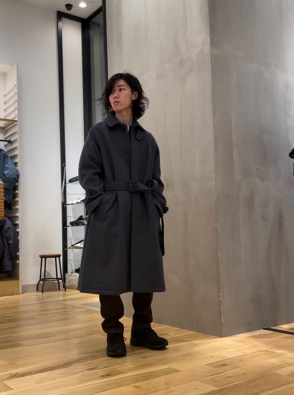 ステンカラーコートはしっかりと重みのある目の詰まったウール生地で、クラシックで大人な雰囲気を演出してくれます。