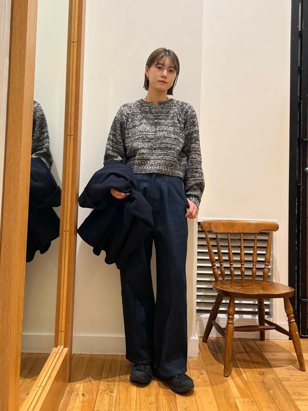 MIXの糸がポイントで、袖のボリューム感と程よいショート丈が1枚主役で着れます⭐️