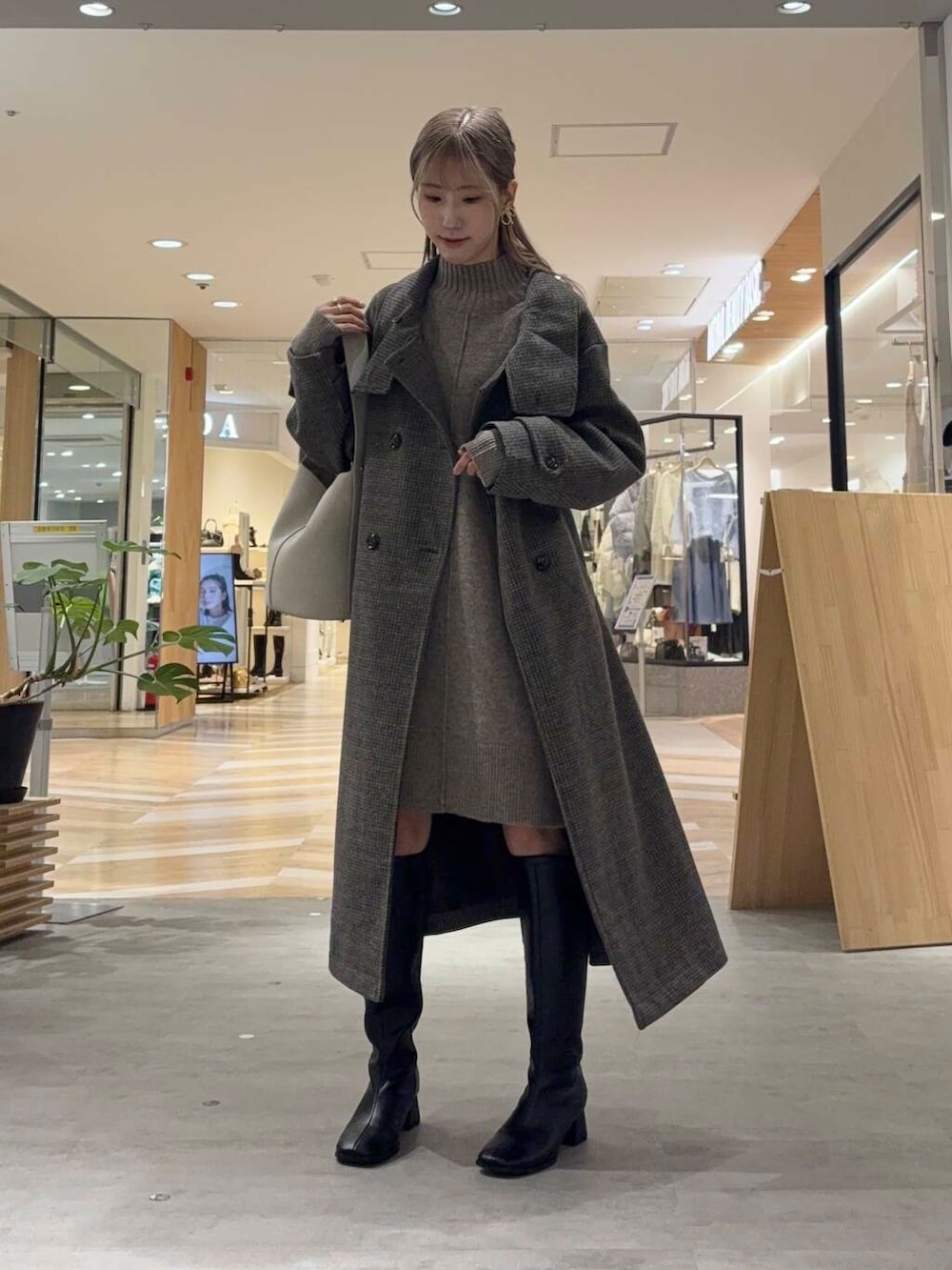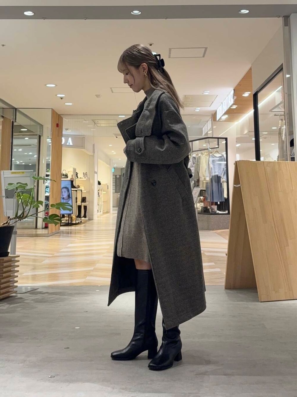 ロングコートは柔らかいチェックなので柄の印象が強くなく取り入れやすいです◎