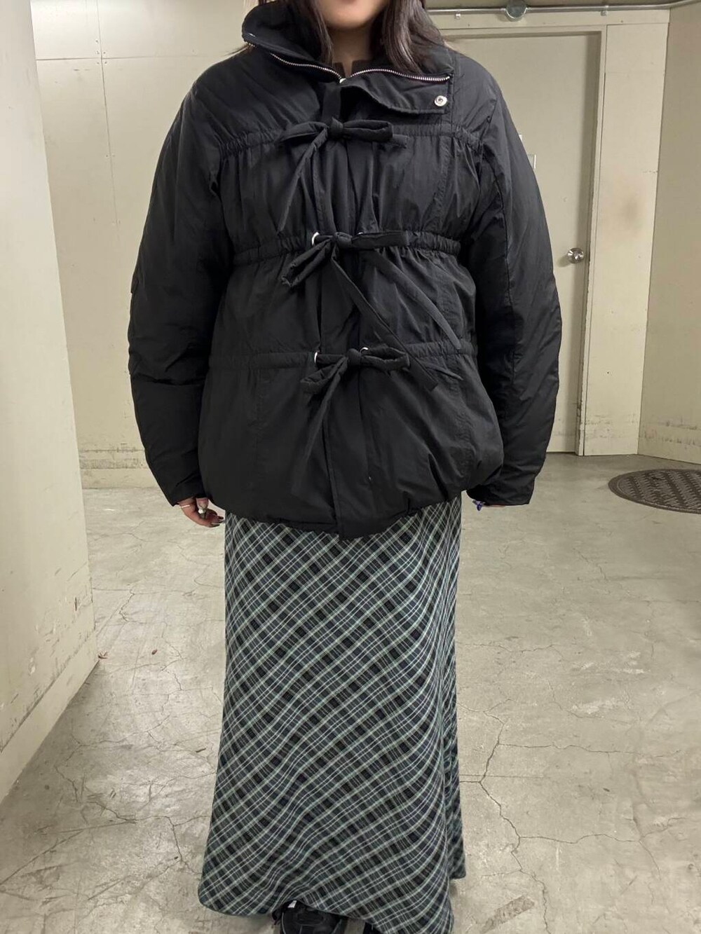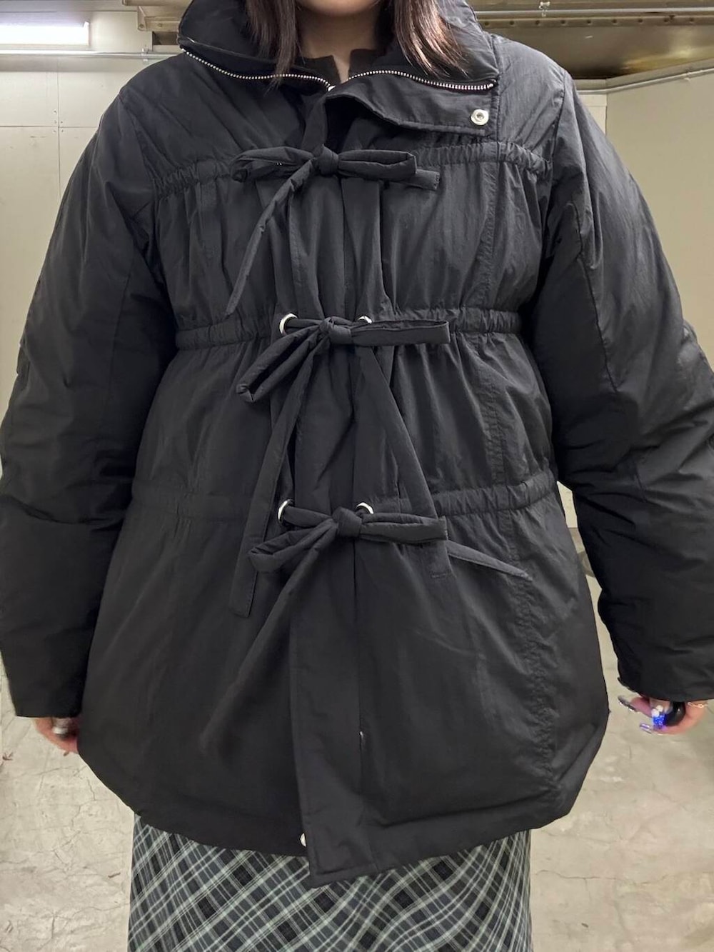 このダウンのオススメポイントは、着膨れしやすいダウンのデメリットを、リボンでシルエットを調節可能にしたことによってウエストシェイプできちゃうんです🫣