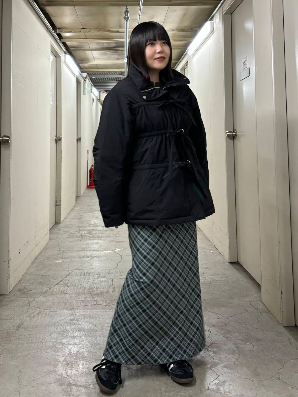 秋スウェットやブルゾン、ジャケットと合わせて着るのがオススメ!!冬はダウン合わせで可愛く着ちゃいましょう🫶🏻