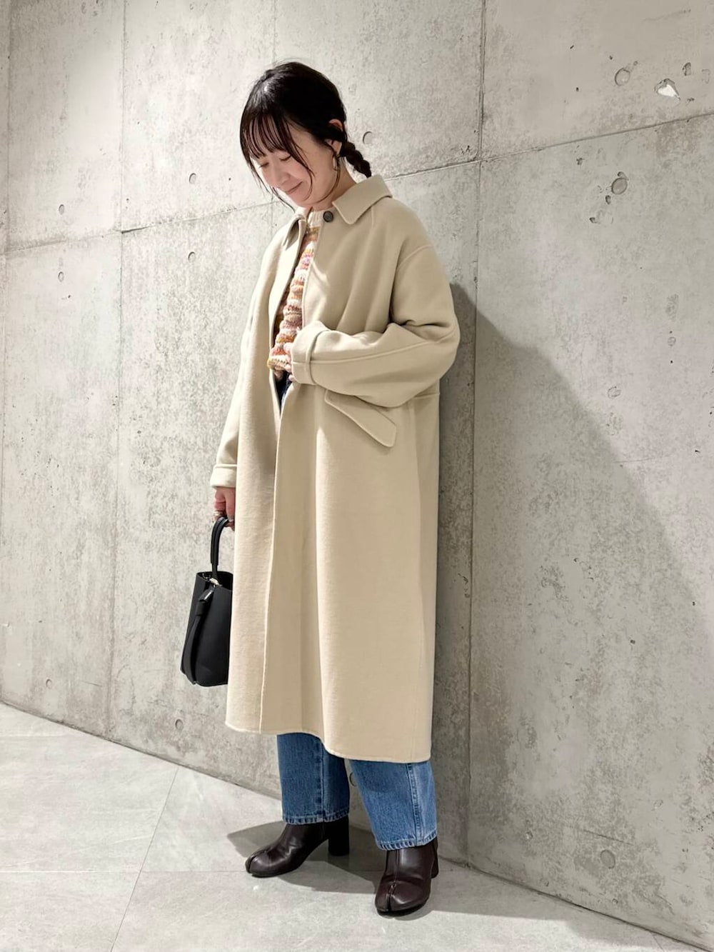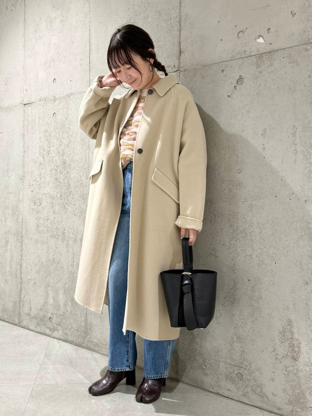 中に厚手のニットを着込むことができる、ゆとりのあるサイズ感です。