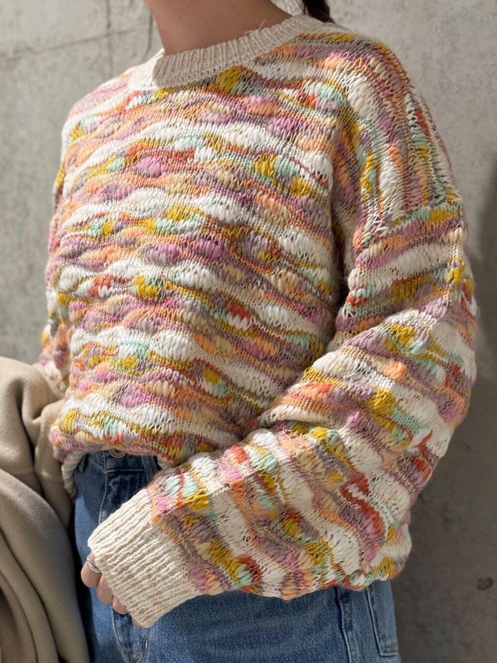 今回は、カラフルなニットを差し色にした大人カジュアルコーディネート。