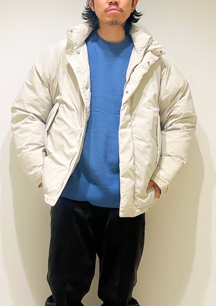 デザインはスタンドカラーのミドル丈を採用し、裾にスピンドルを通しているので絞るとシルエットを変えていただけます。