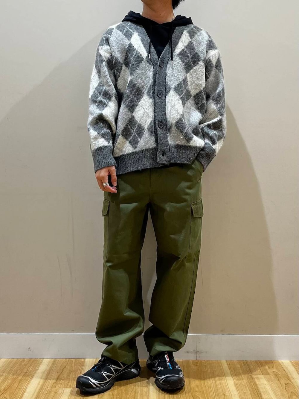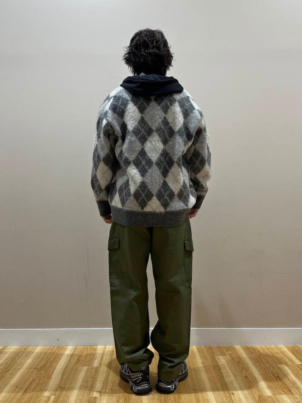 今回はアーガイルモヘアオーバーサイズニットカーディガンをメインにコーデを組みました。