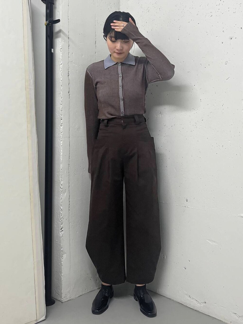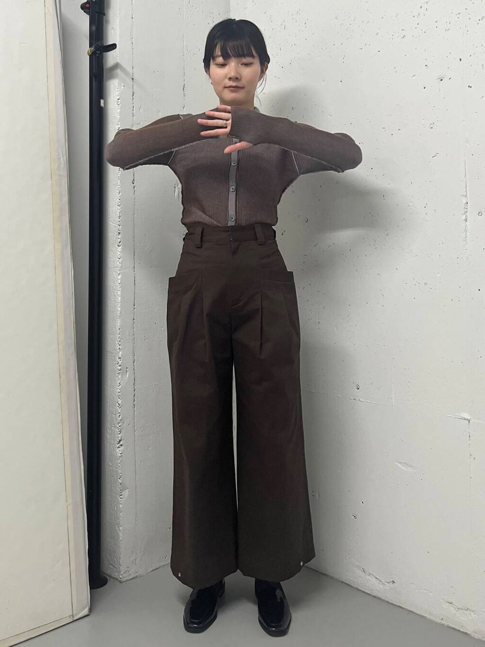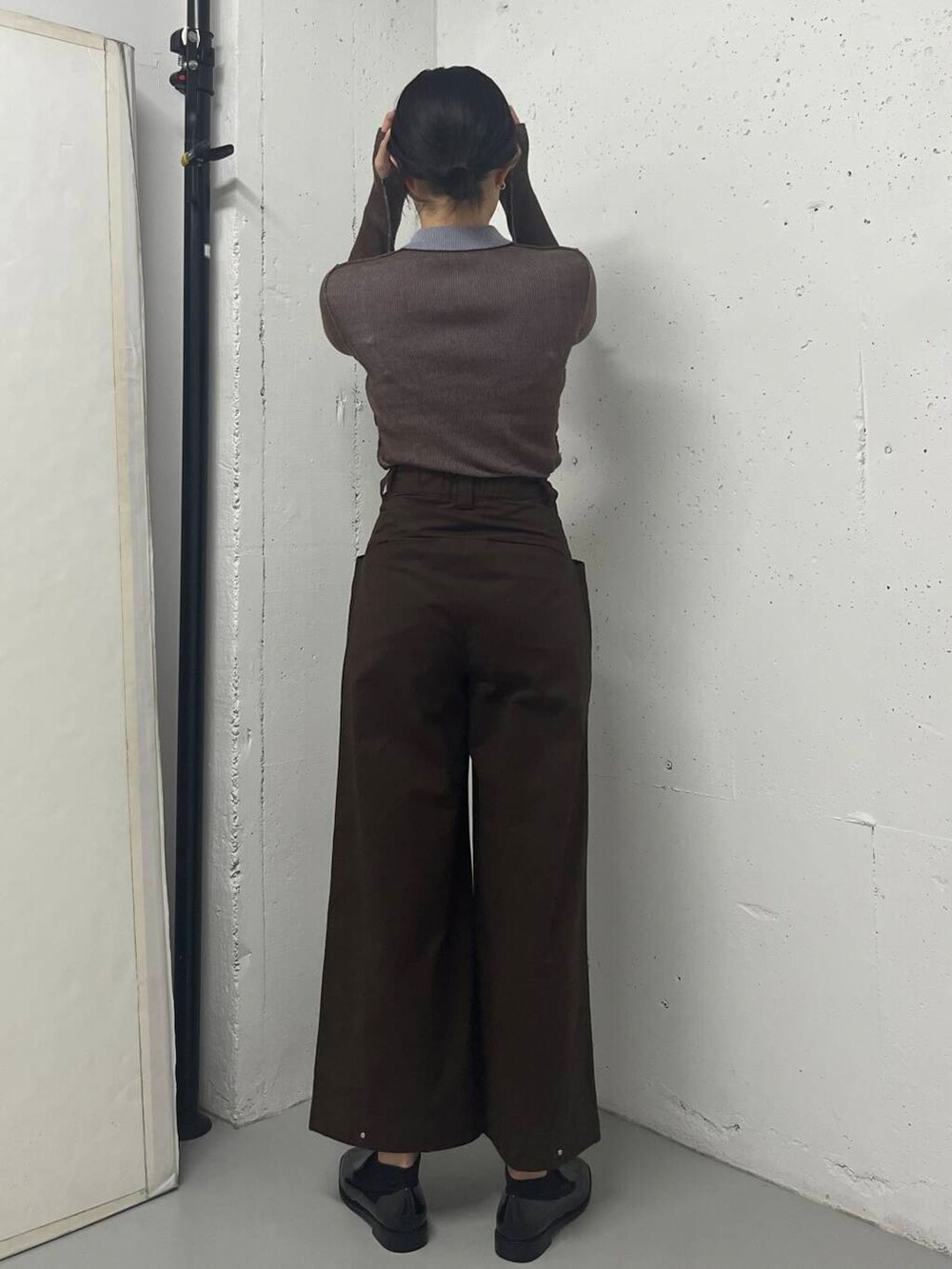 パンツの裾に釦がついているのでコーデに合わせて雰囲気を変えられるのがお気に入りポイントです!