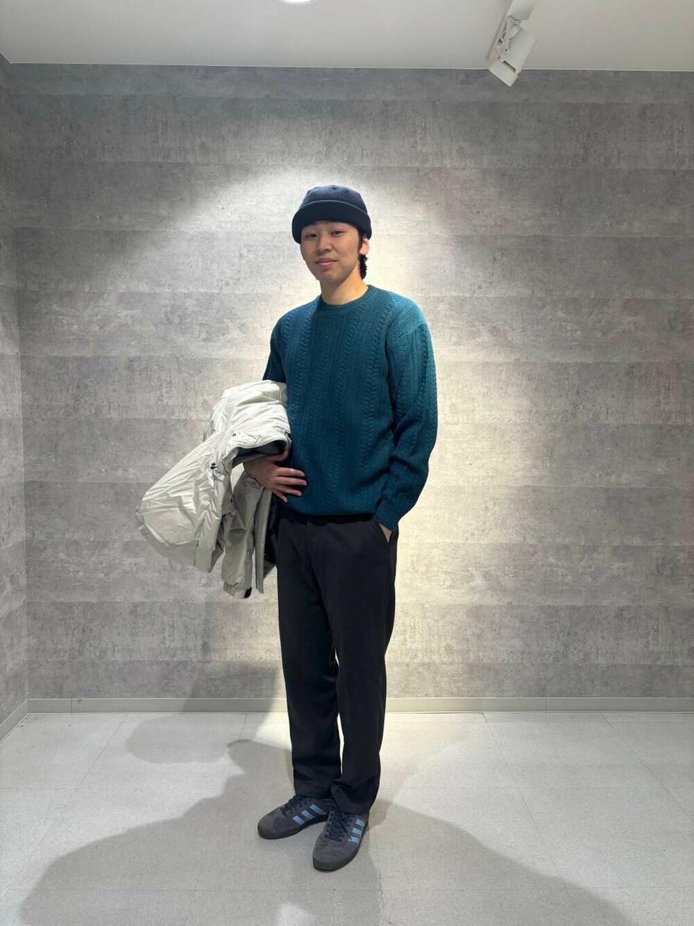 ニット帽とチュニジアウールケーブルニットで合わせて冬らしさを演出してみました!