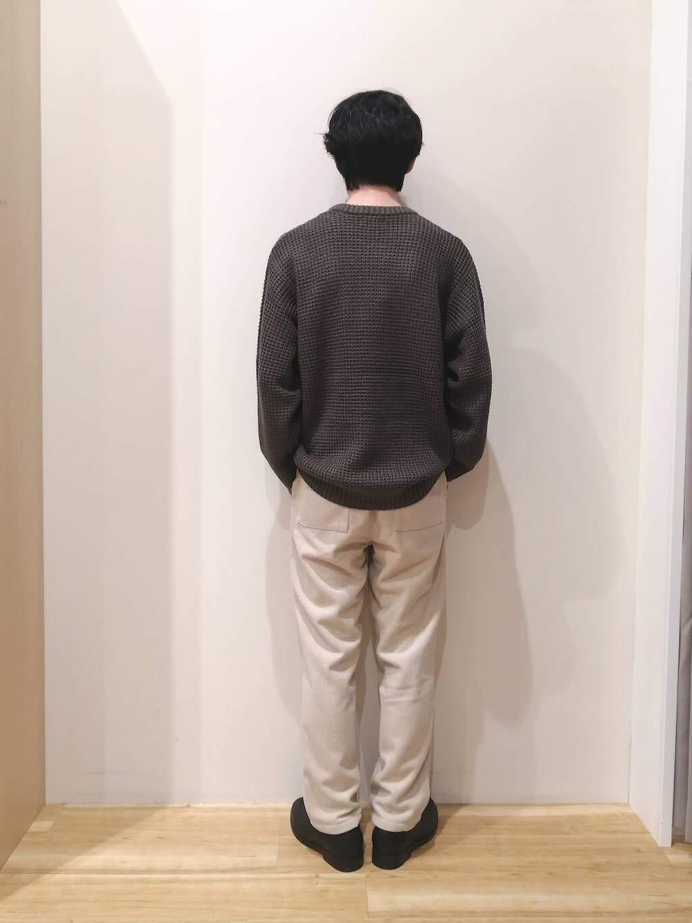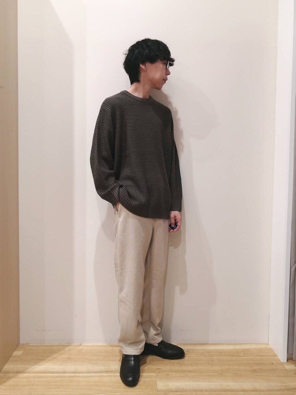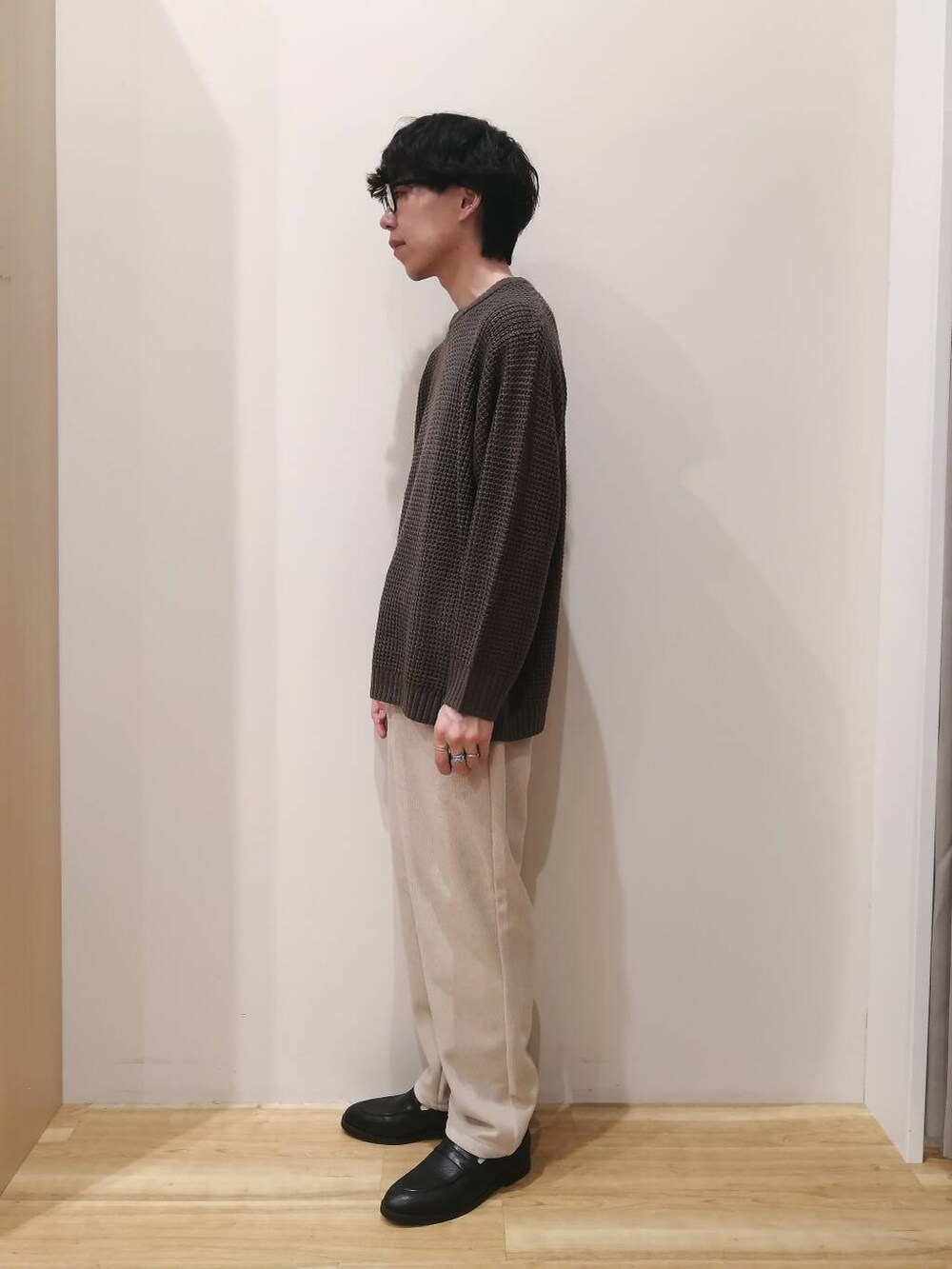 ニットは粗めのワッフル生地が可愛らしくアクセントになるアイテムです。