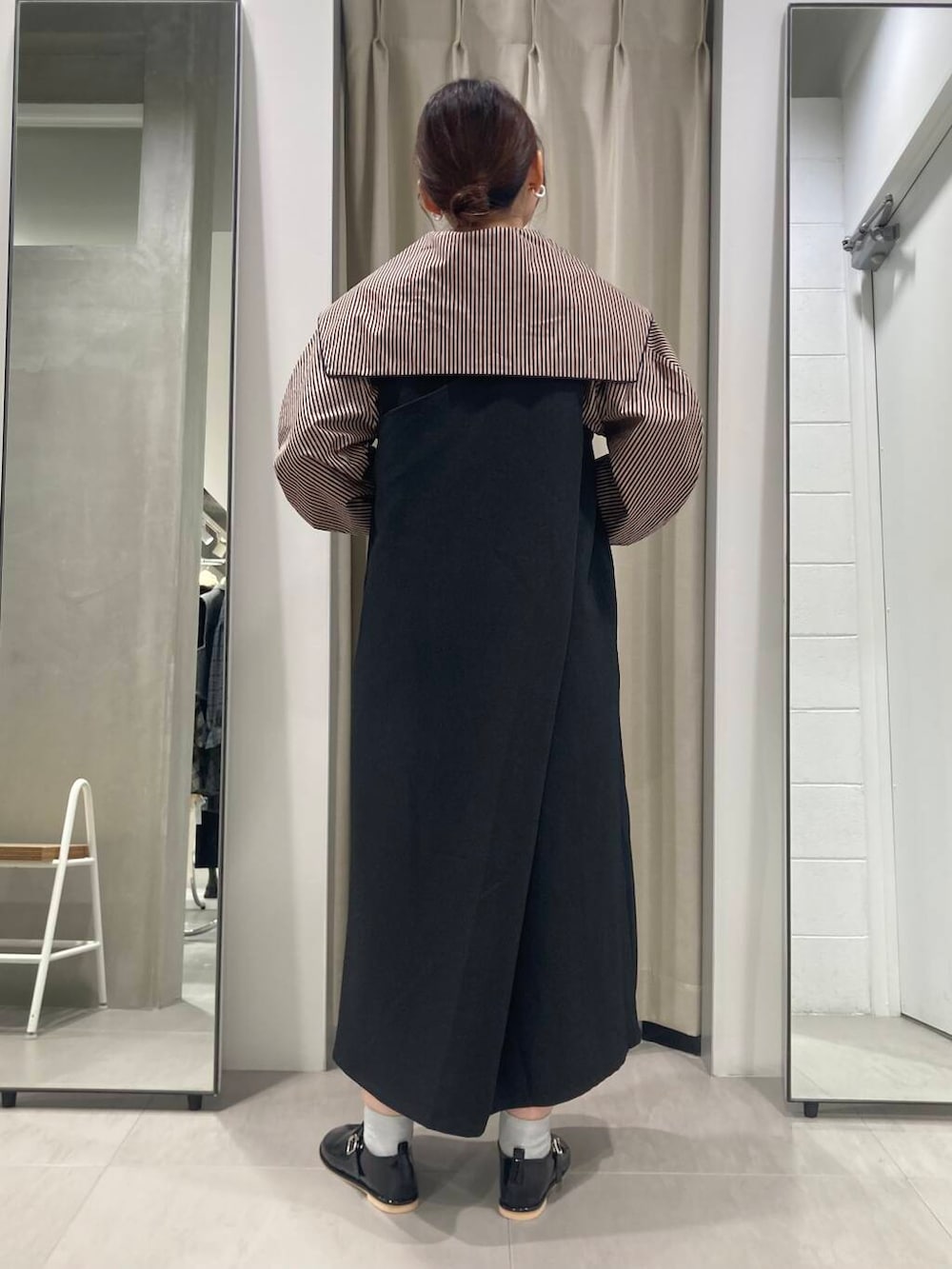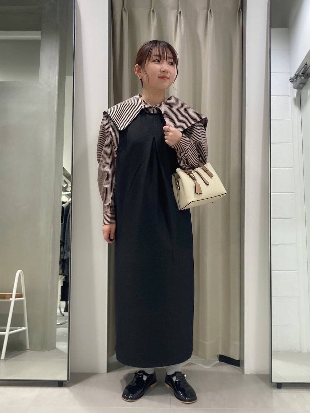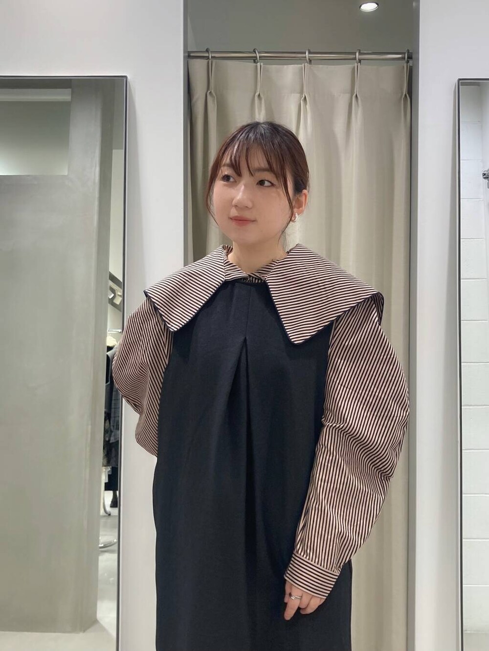 ストライプがパキッと強めなので、ジャンパースカートやワンピのインナーとして使うと取り入れやすいですよ!