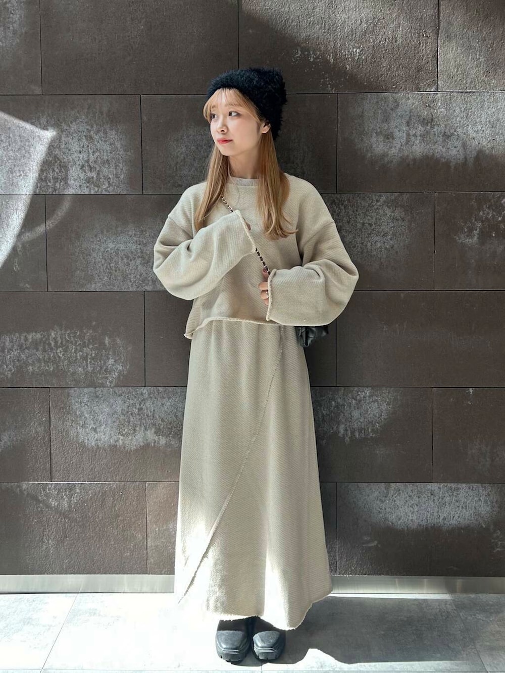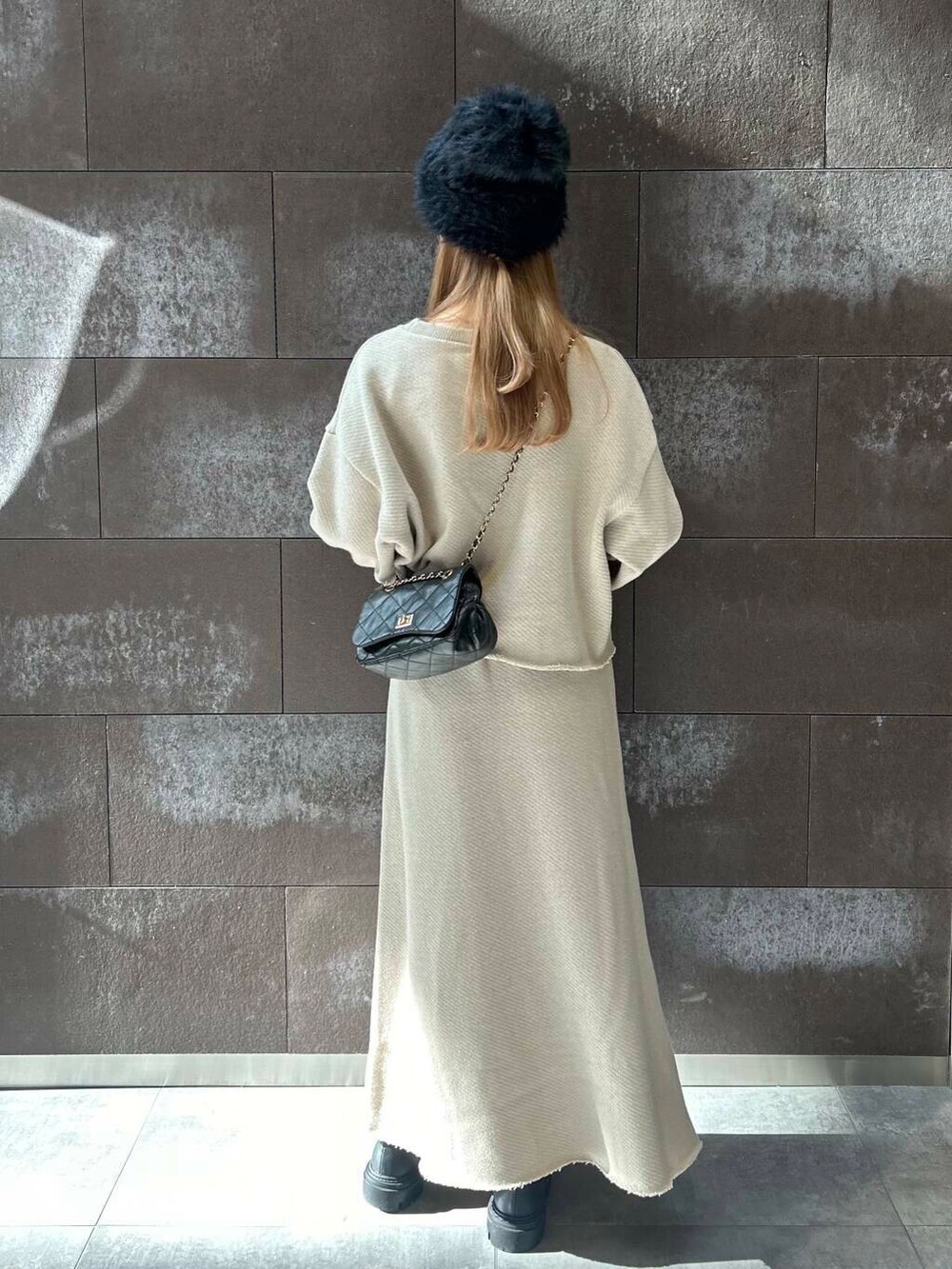 このトップスは、ほどよい短丈となっているのでどなたでも挑戦しやすいたんだけどなっています。袖が少し長めになっているので、ふんわりとした雰囲気になり着心地もよいです!