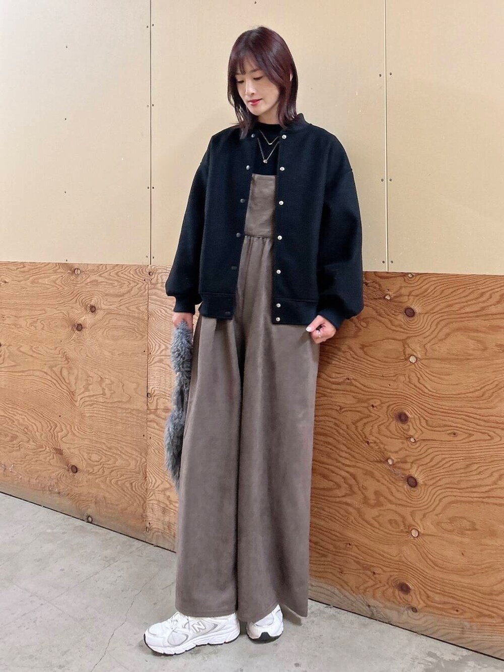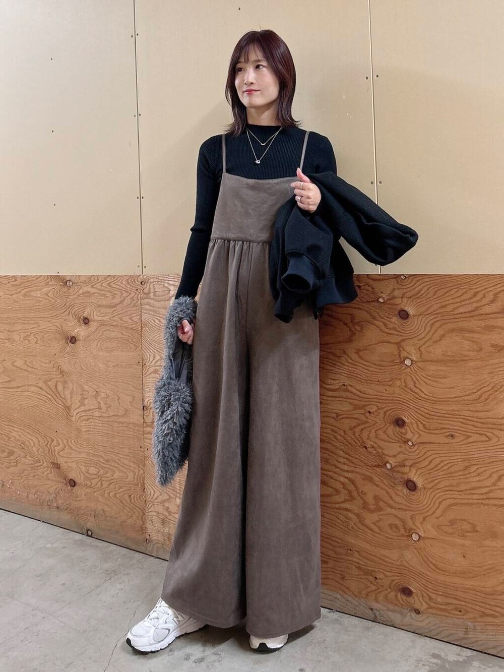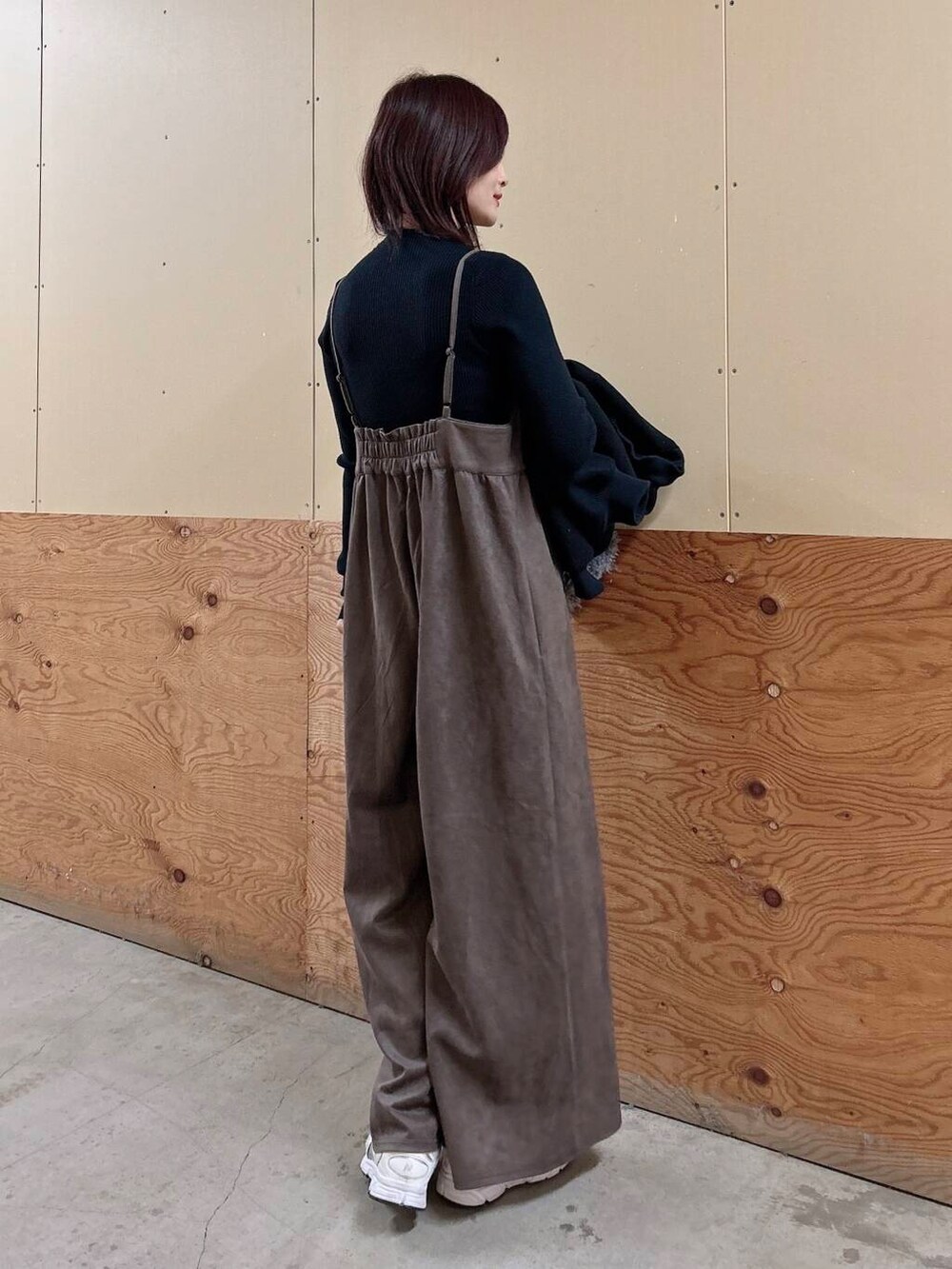 サロペットは柔らかいベロア生地でウエスト周りもゆったりしています。