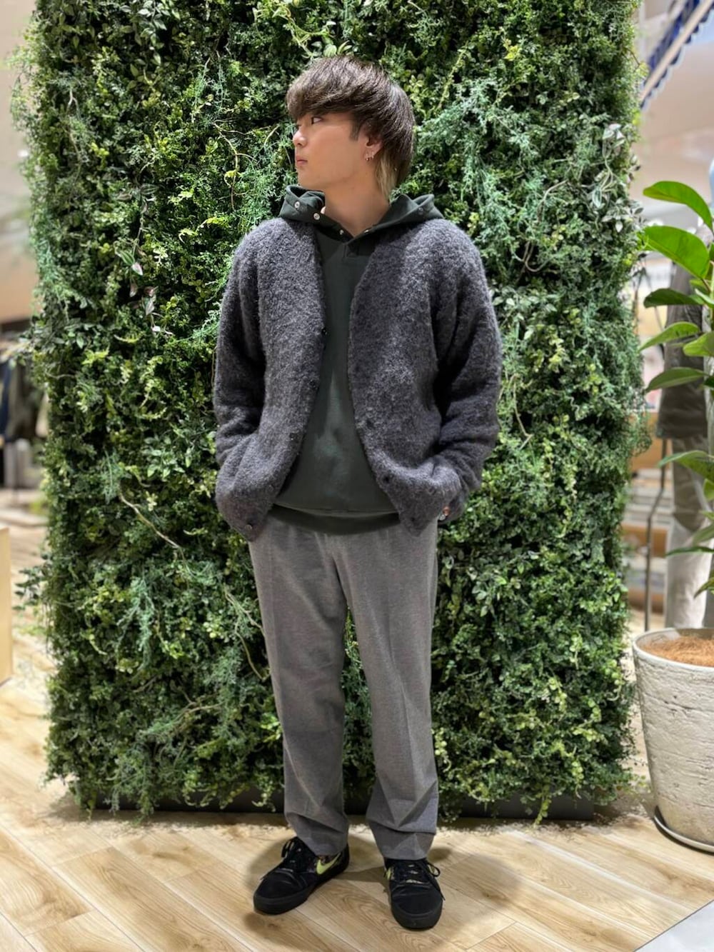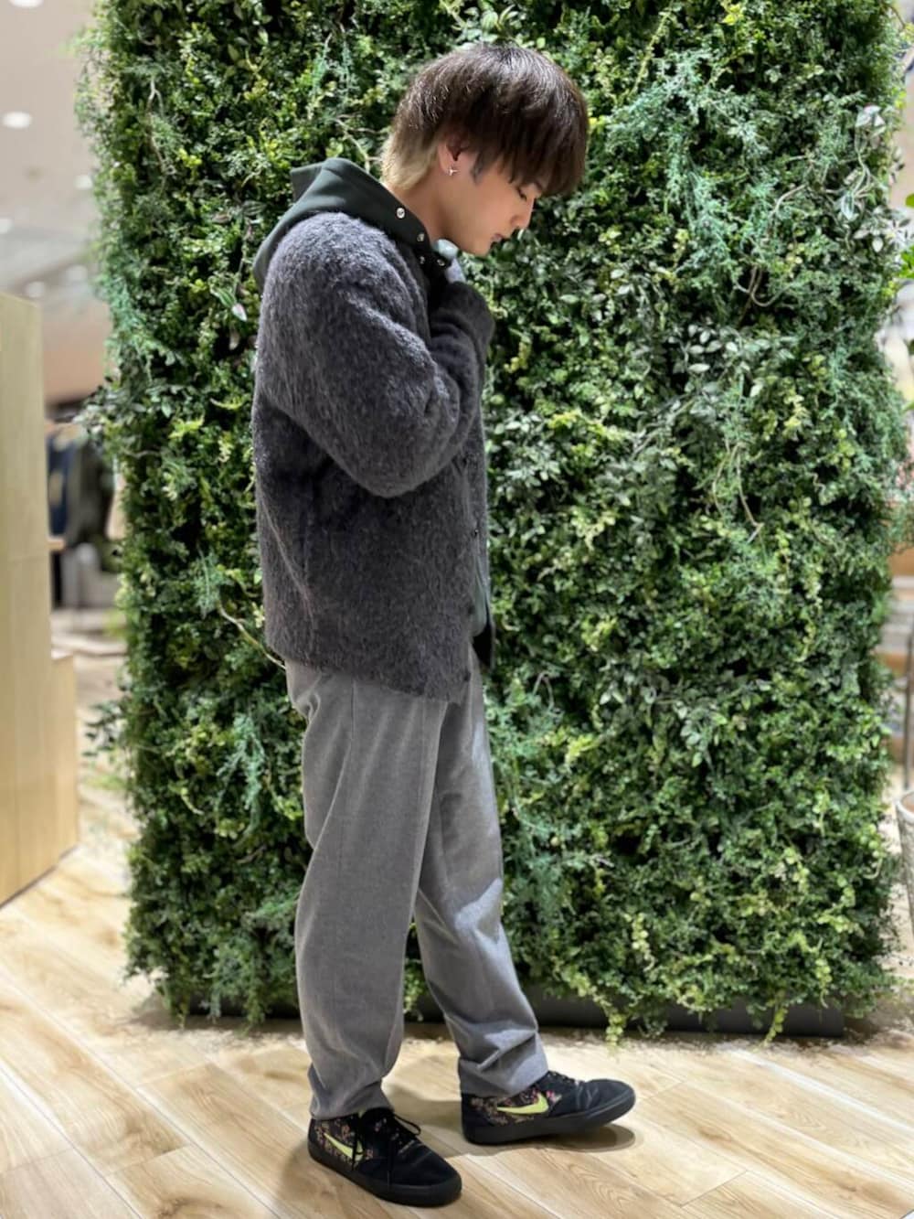 ヘアリーニットカーディガンにChampionのパーカーを合わせて大人カジュアルにスタイリング☕