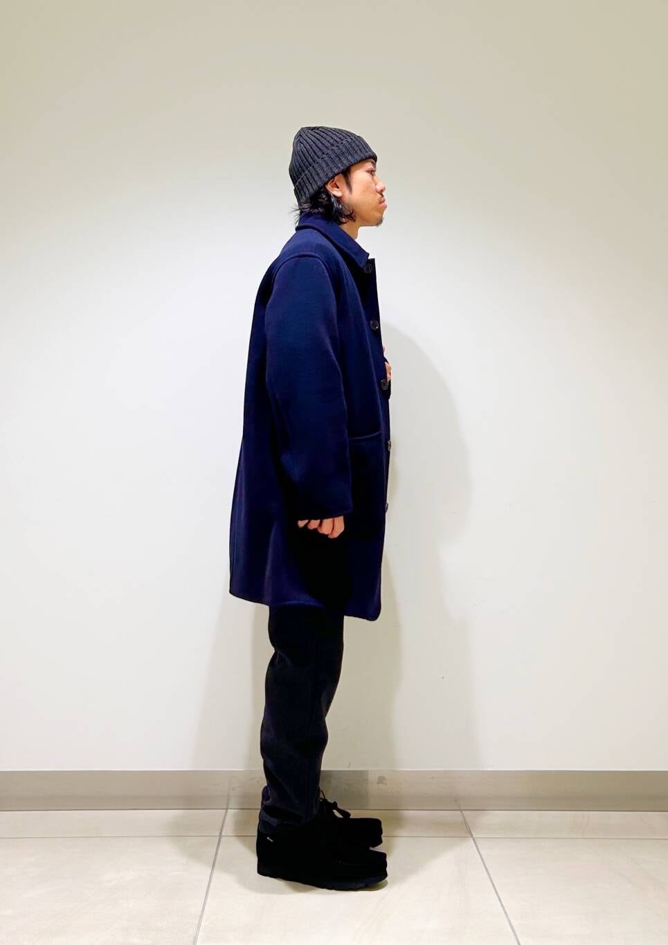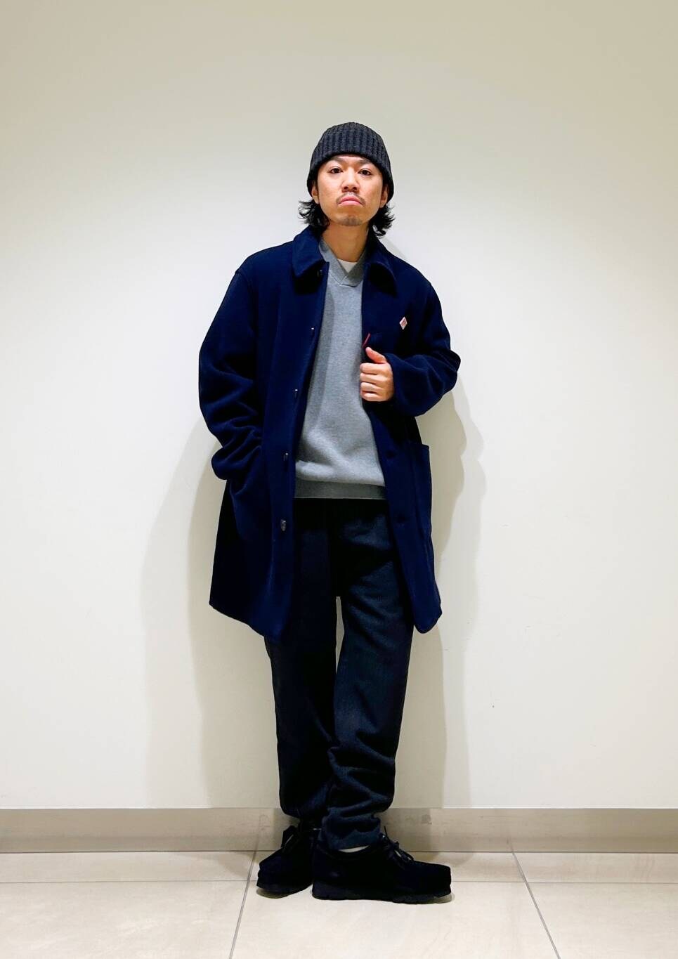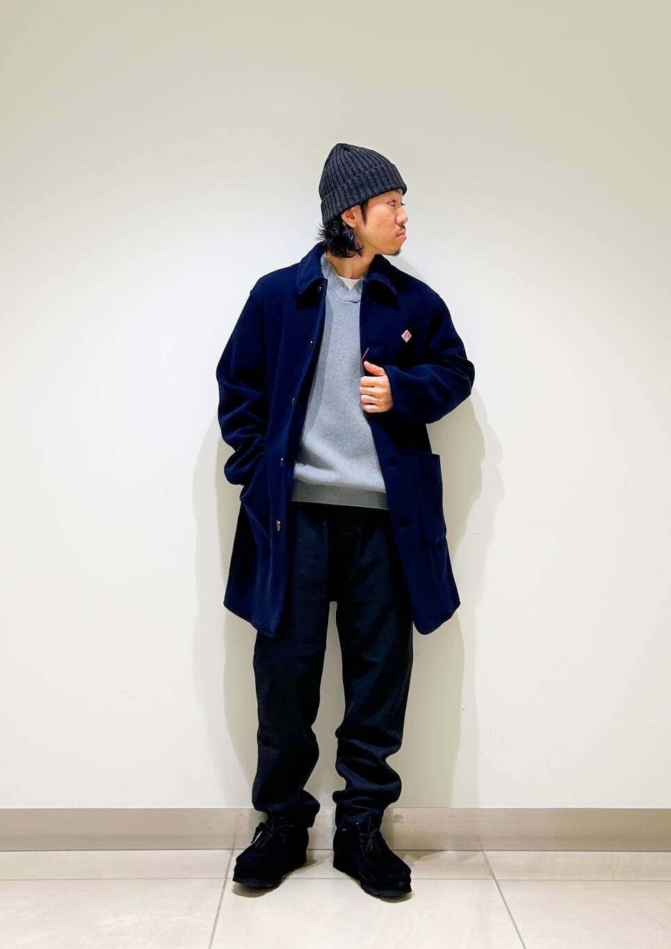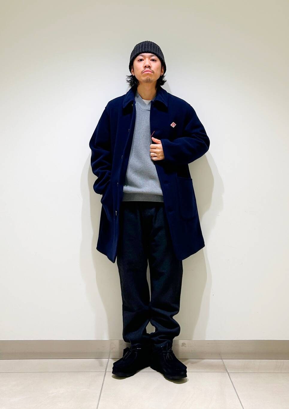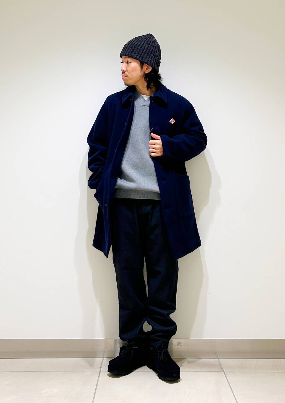 今回はDANTONカバーオールコートとグラミチ別注ウールパンツを使用したコーディネート。