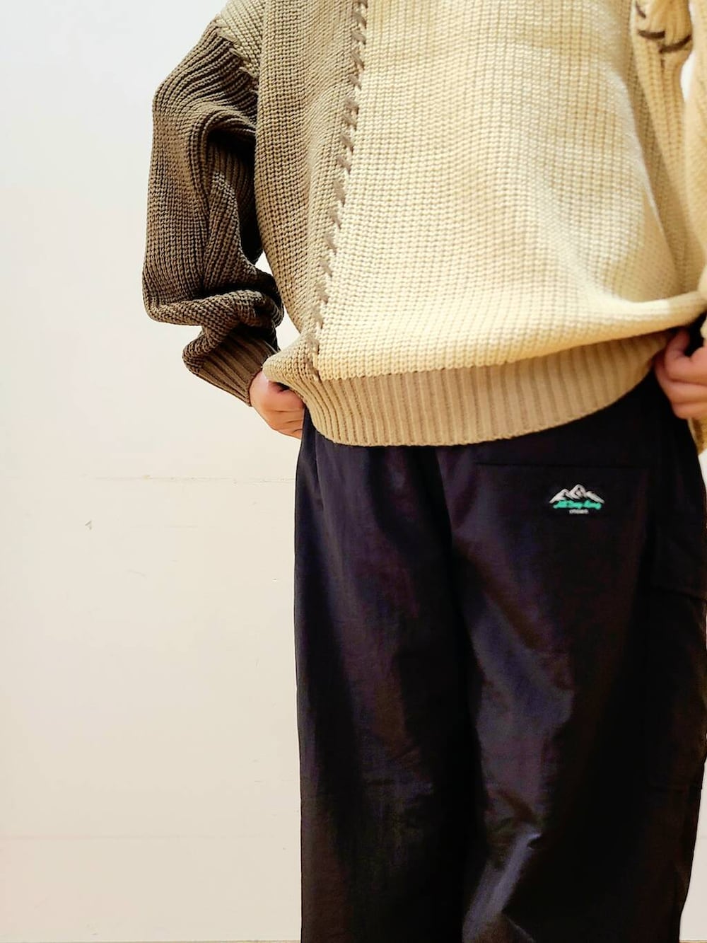 ボディーは3色で切替えており、切替え箇所をブランケットステッチでアクセント。