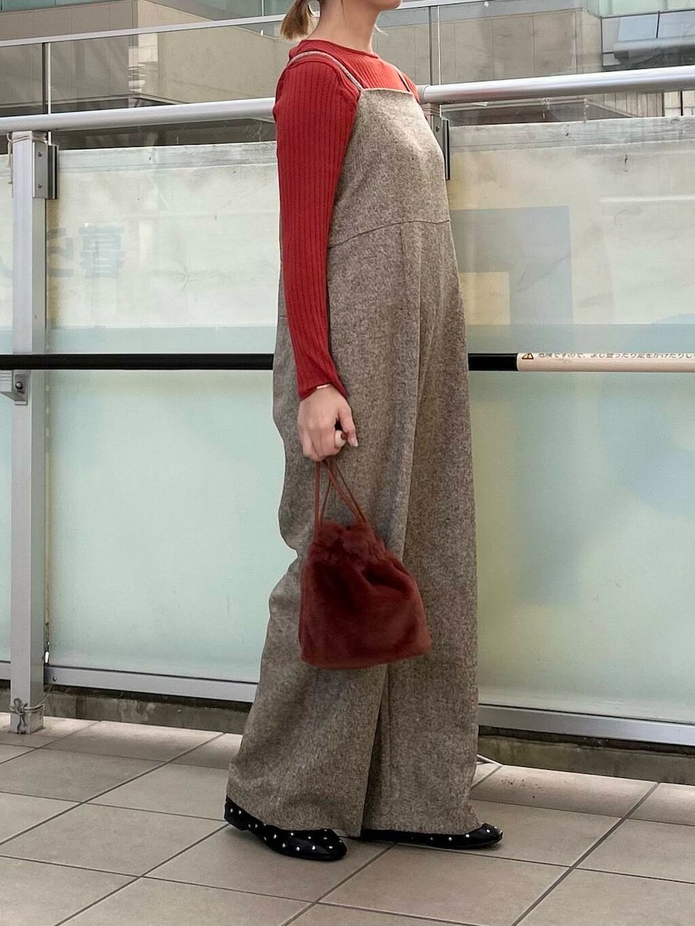 バッグでもカラーを足して秋らしい色味のコーディネートにしました。
