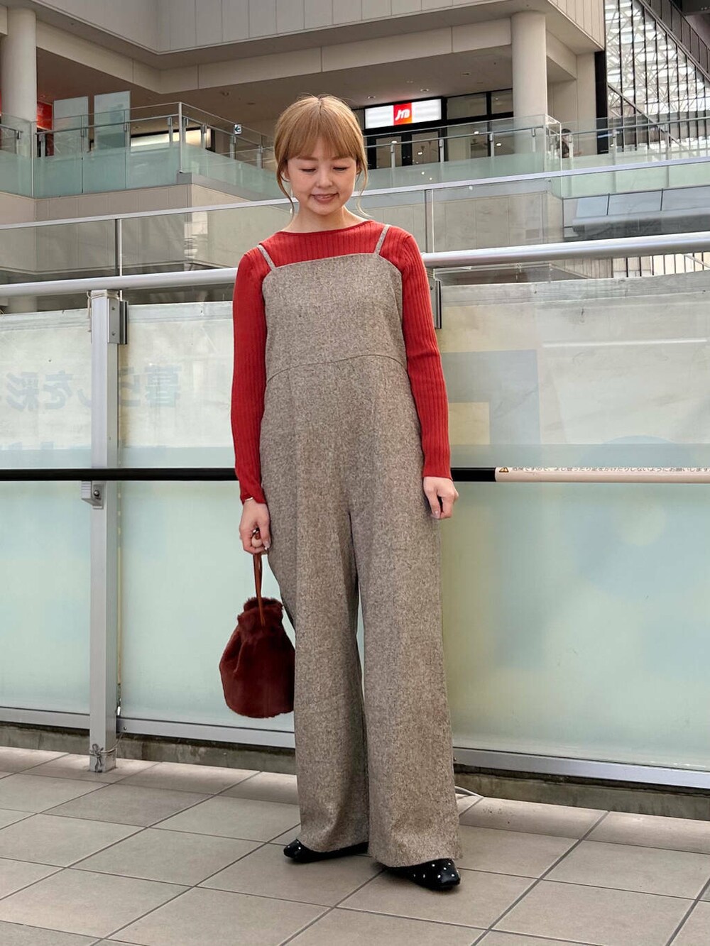 ニットは薄手なのでジャンパースカートやサロペットのインナーにオススメ。
