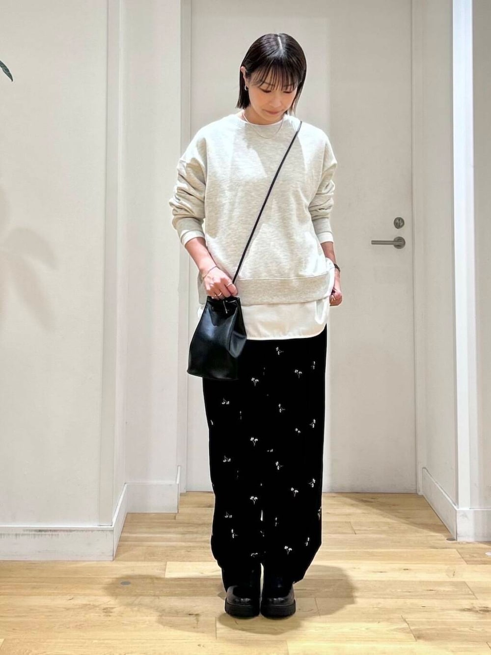 着丈は少し長めなので156cmの私はブーツで合わせたり、ウエストで折り返したりして調節しています。