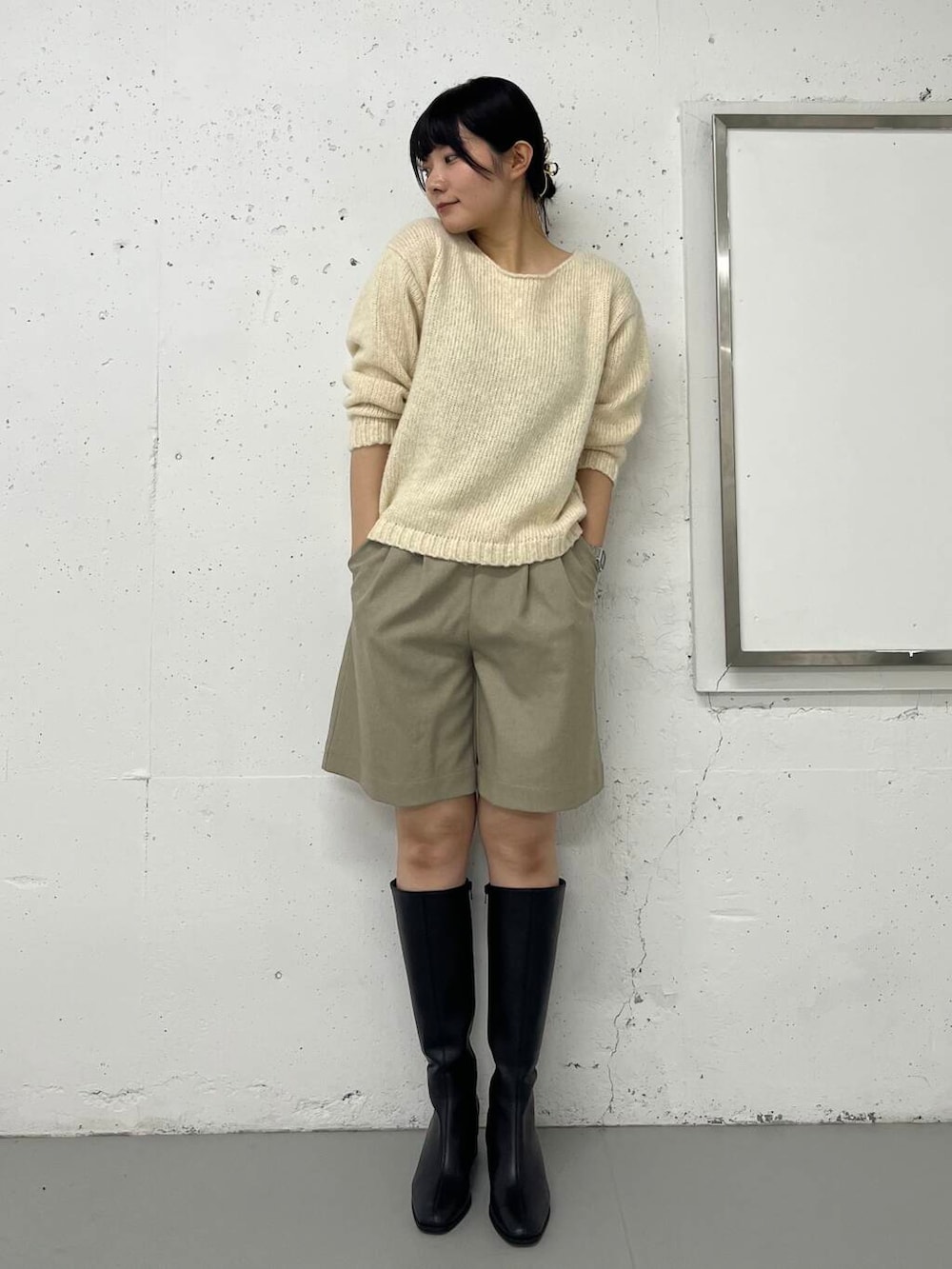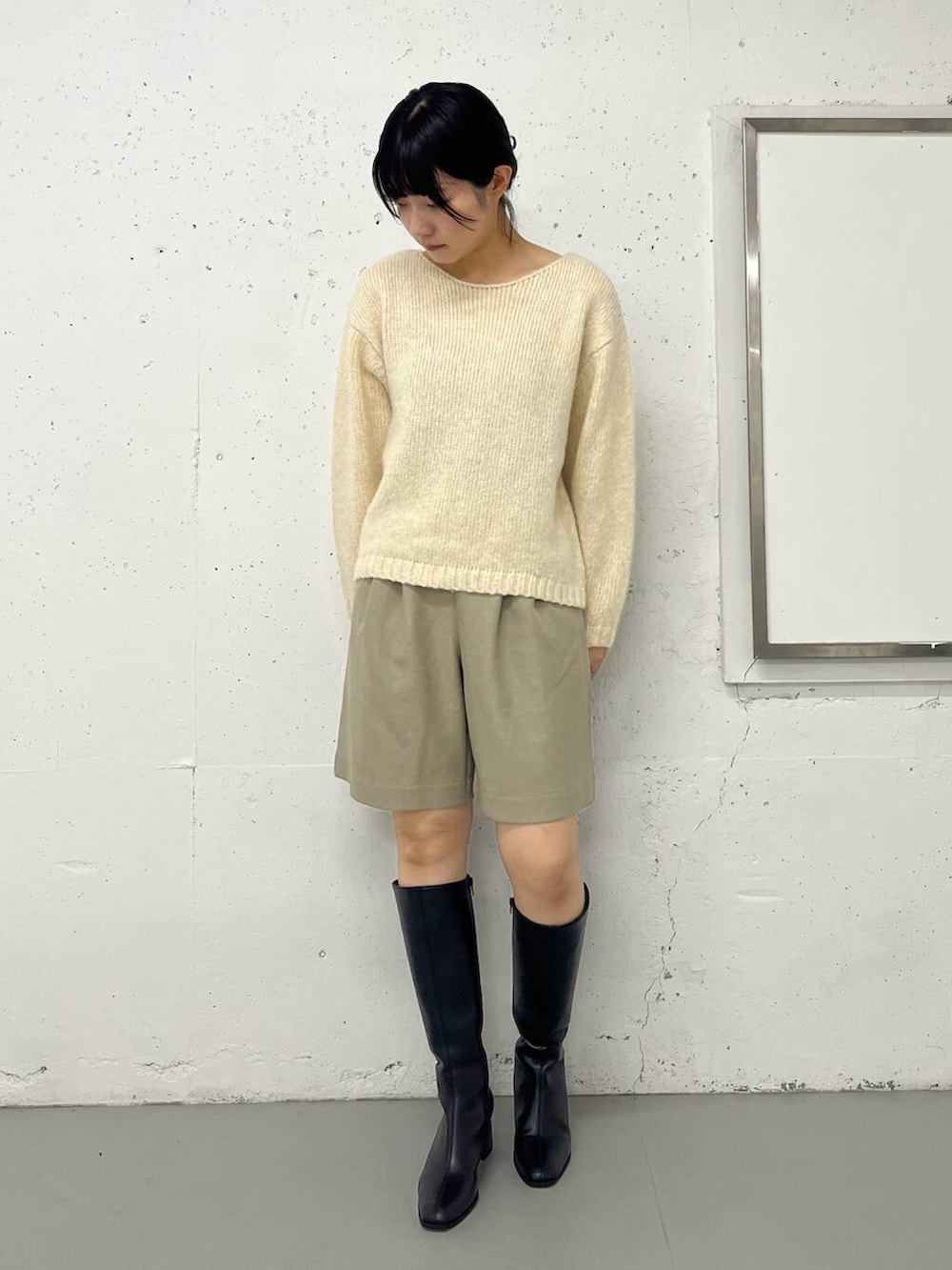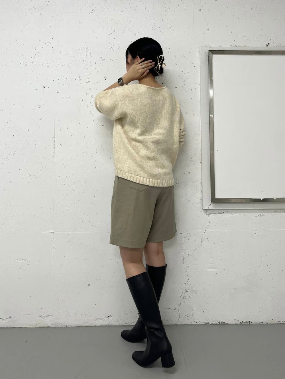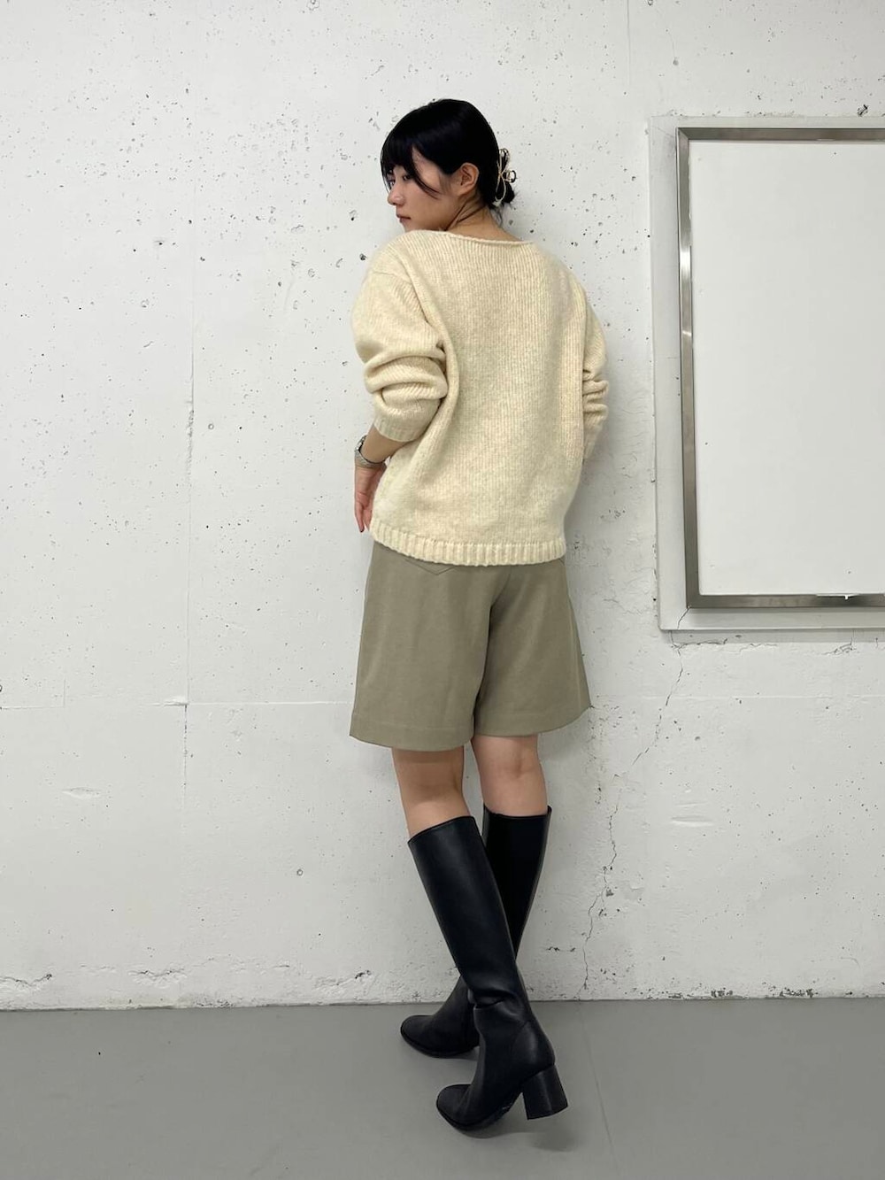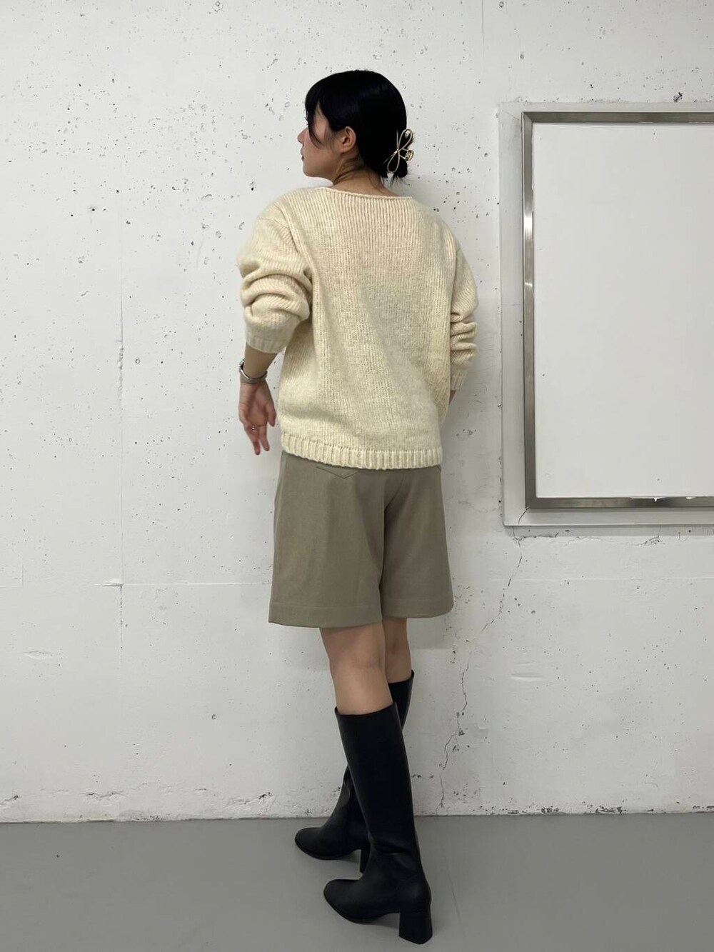 今回は一枚で着たのですが、中にシャツなどを着て重ね着にでも合わせやすいニットです。