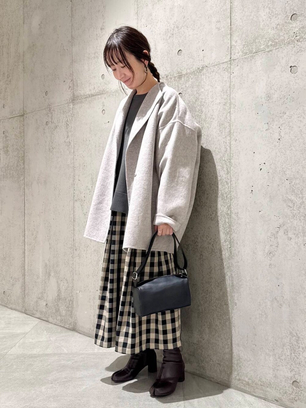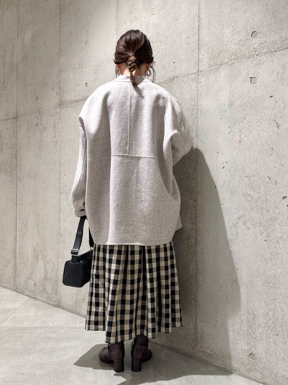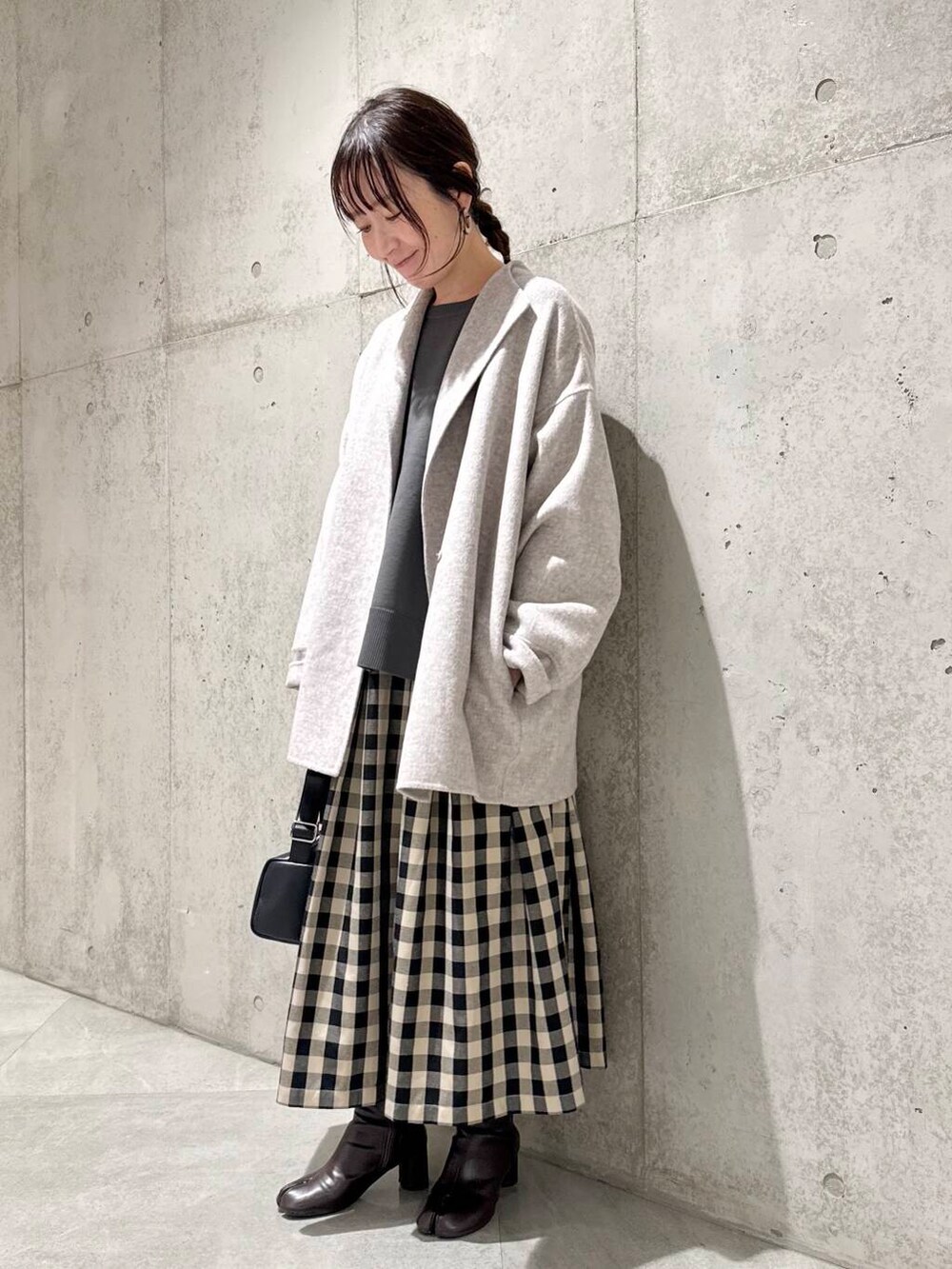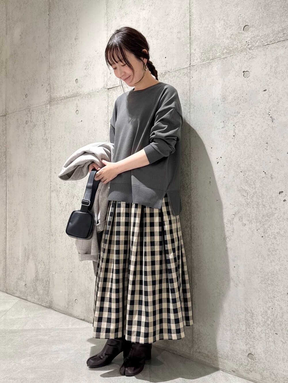 今回は、チェック柄のスカートを合わせた、大人カジュアルコーディネート。
