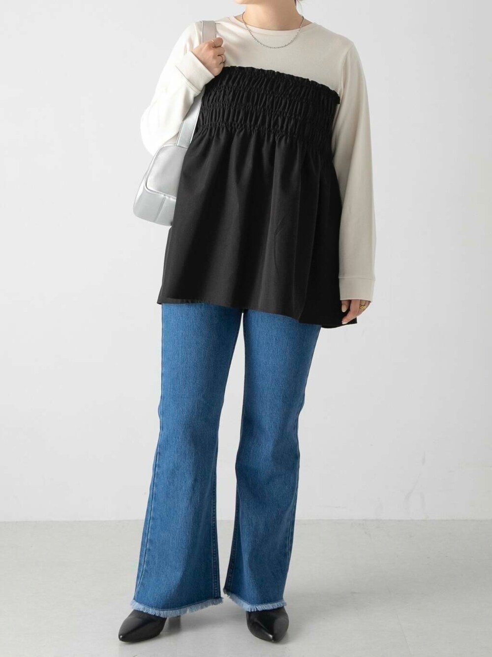 少し長めの着丈なので今回は高山さんコラボの細身デニムを合わせ