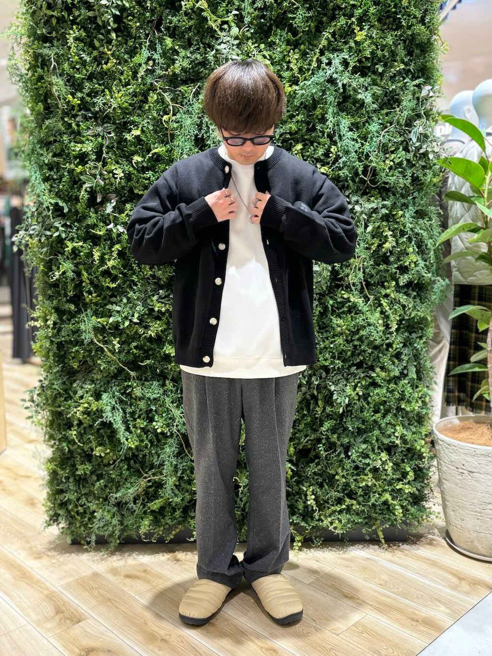 シンプルなカラーでまとめ、ウールブレンドパンツで少しの柄を、、、!