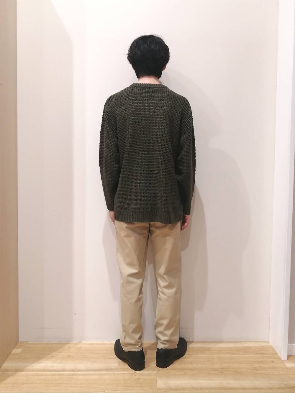 アウター、ニット、パンツすべてMサイズを着用しております。