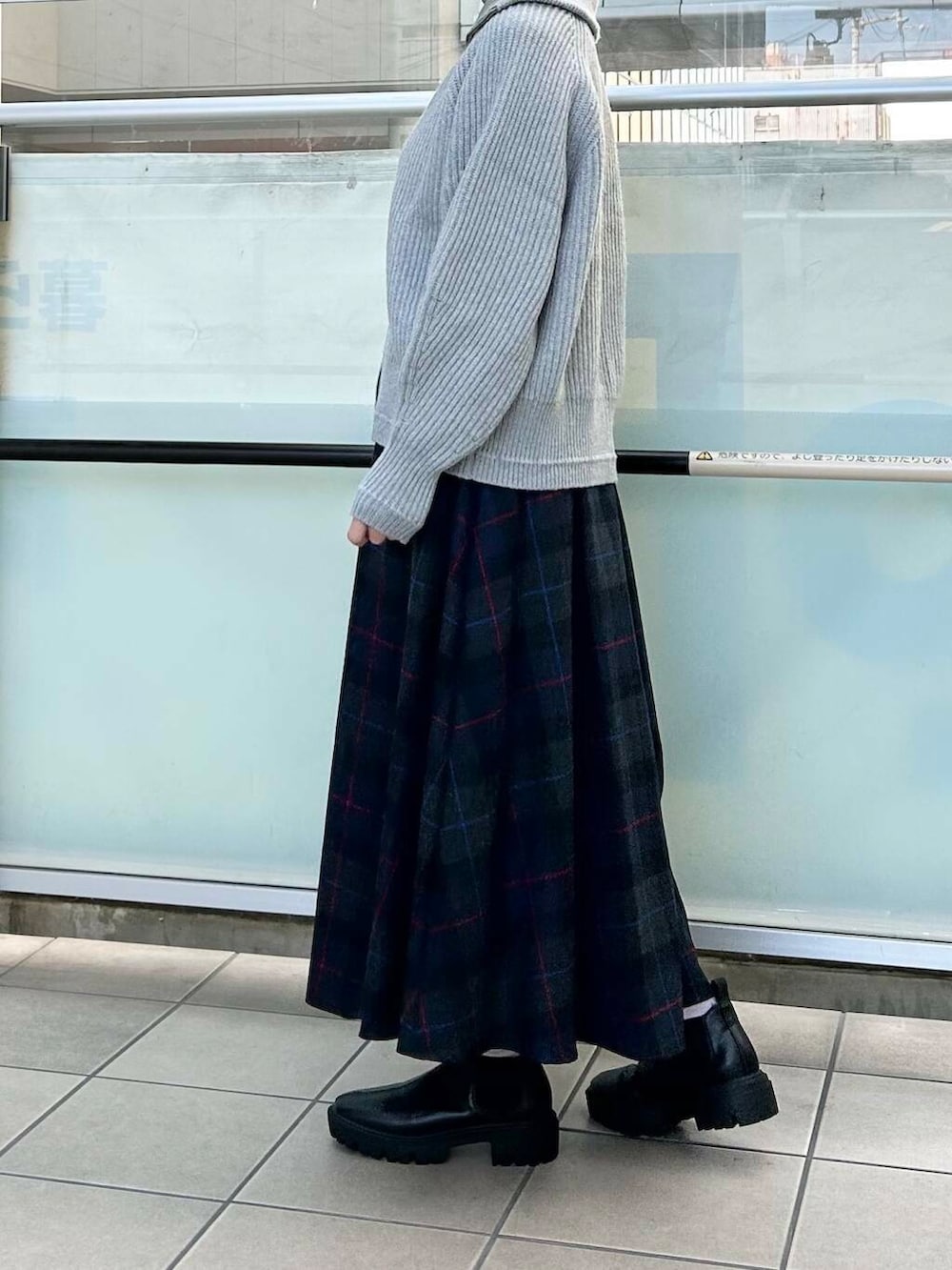 ウエストがゴムで見せてもかわいいのでタイトなニットをインしても素敵です。