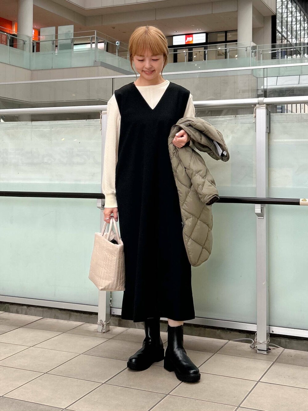 中にはキレイ目にも使えるジャンパースカートを合わせました。