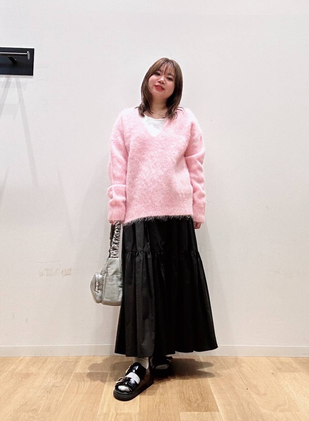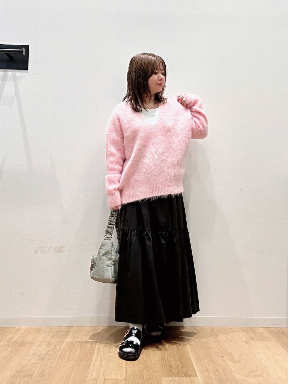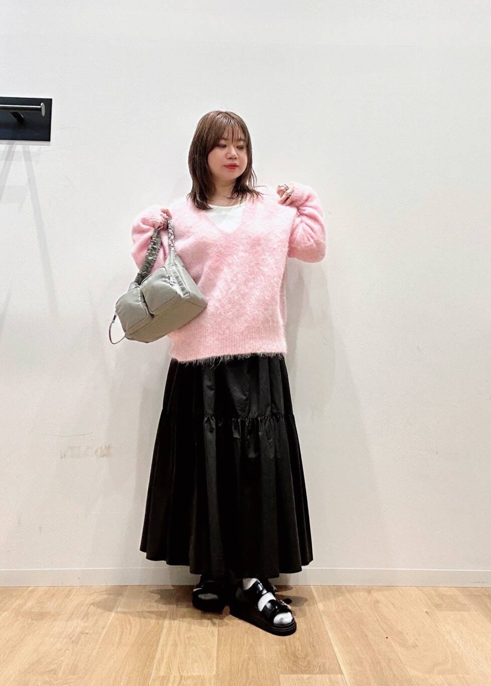 ティアードスカートはウエストゴムで履きやすく長い季節着用可能な素材です🟣
