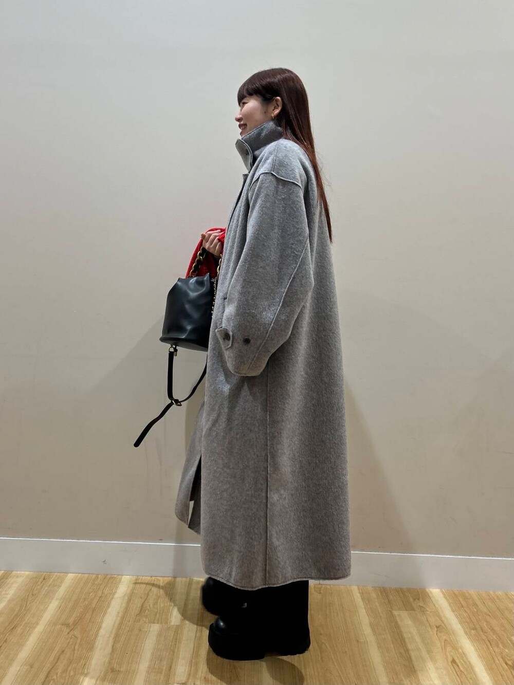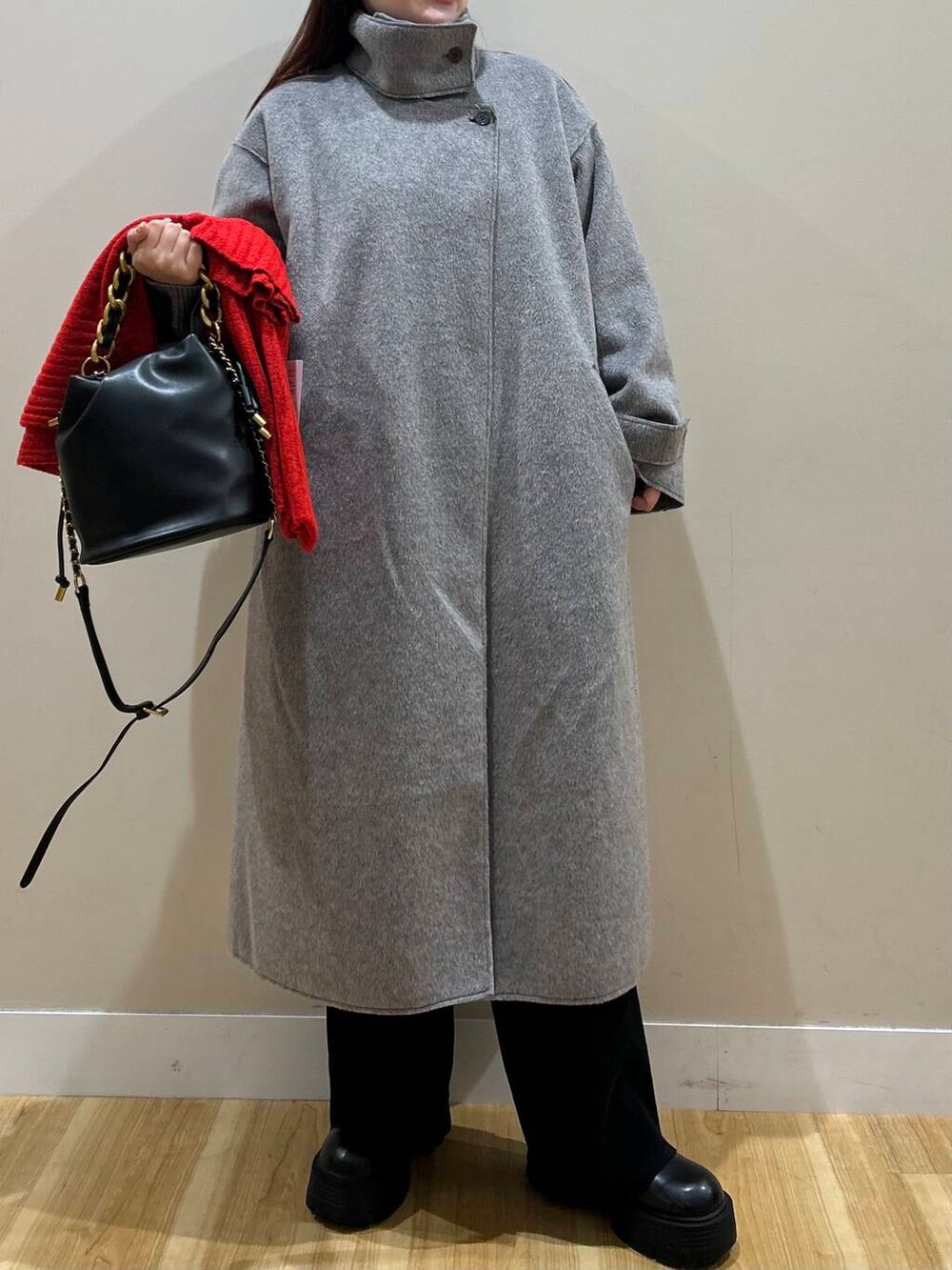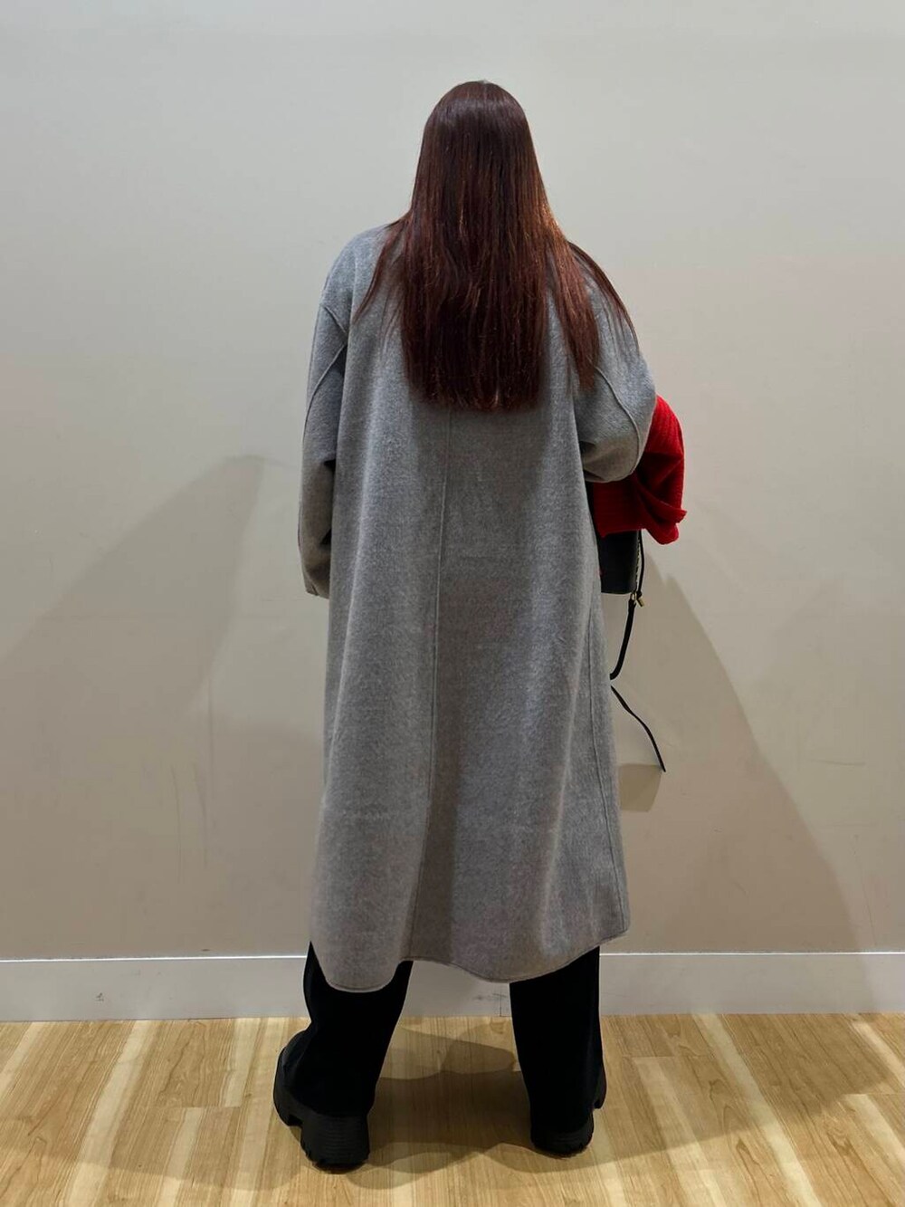 ロングコートはお袖ゆったりなので中に着る物を選ばずに着用いただけます◎