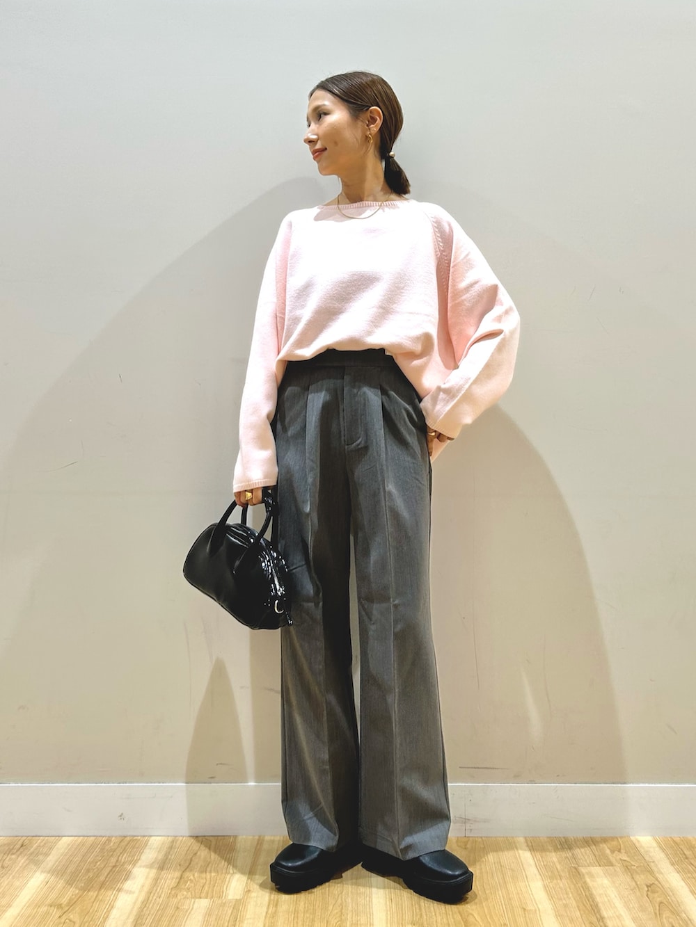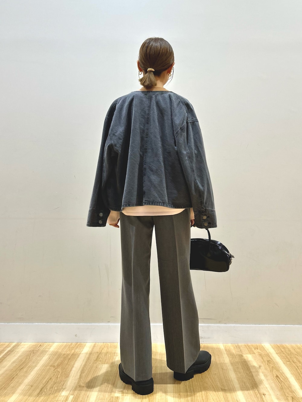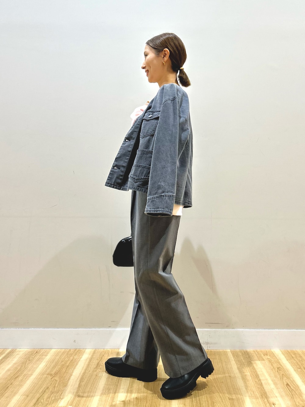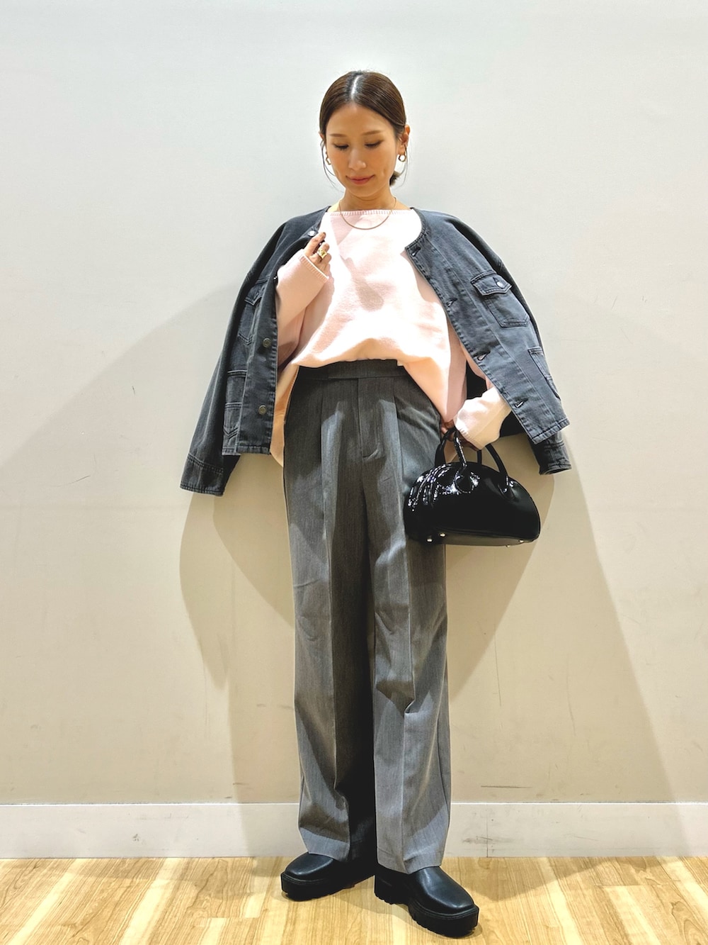 パンツはワイド過ぎずスッキリ脚長に見えるシルエットで