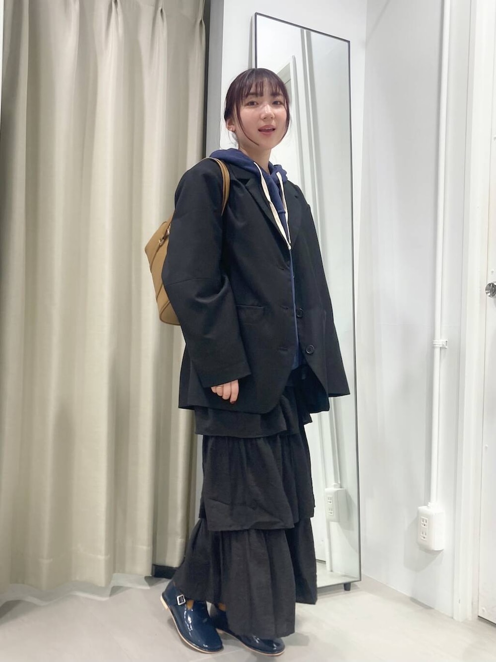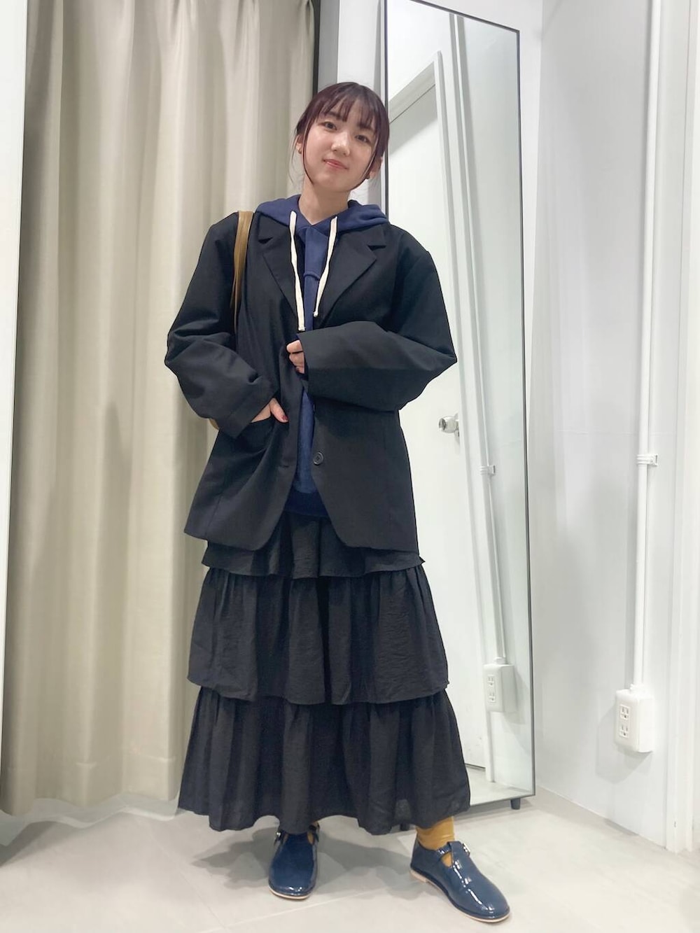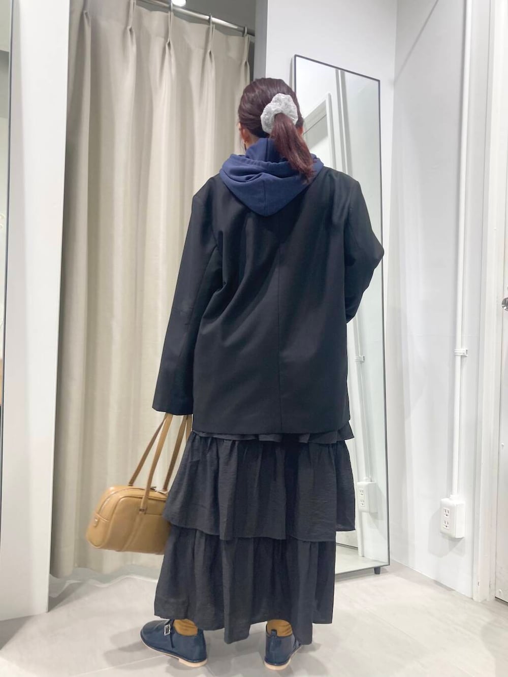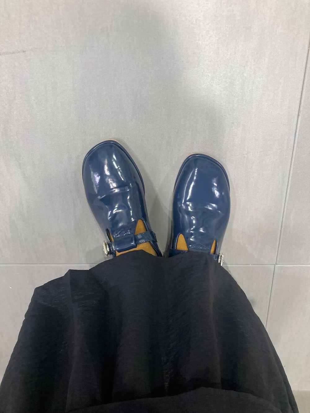差し色にバッグと靴下のマスタードカラーが映えるワントーンコーデです✨