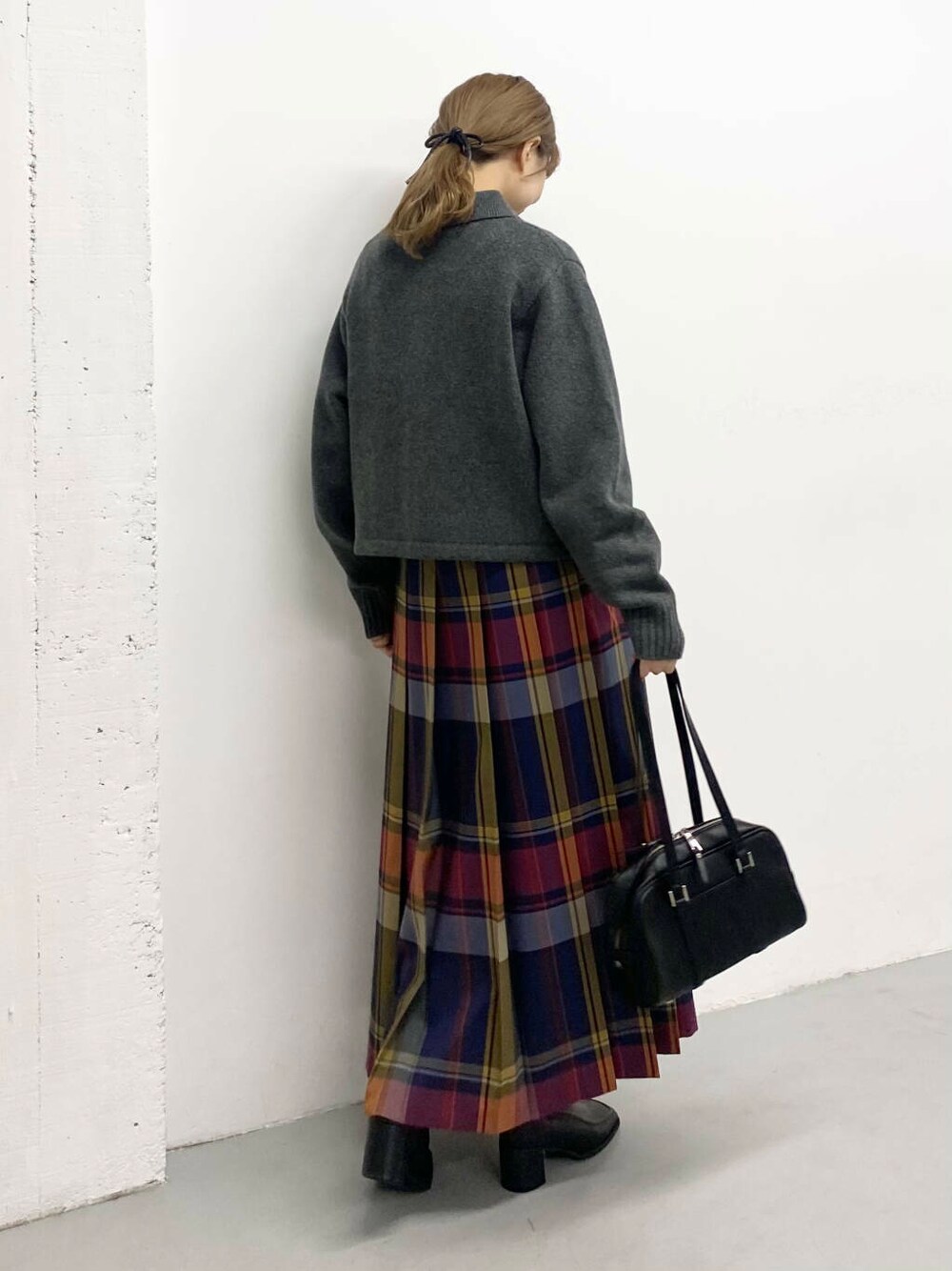 チェック柄のプリーツスカート。