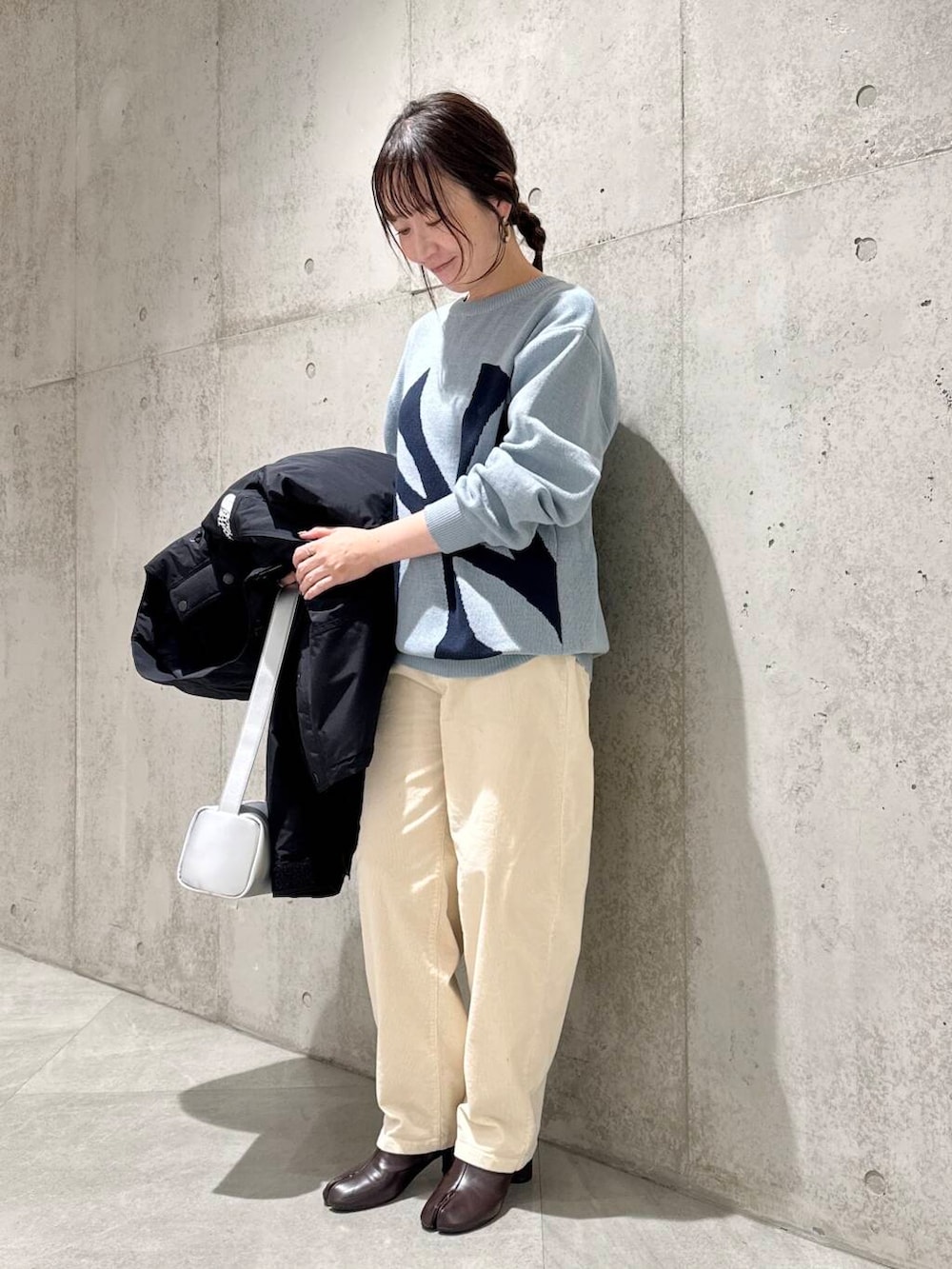 今回は、ボリュームのあるアウターなので、コーデュロイのパンツで、スッキリとまとめてみました。