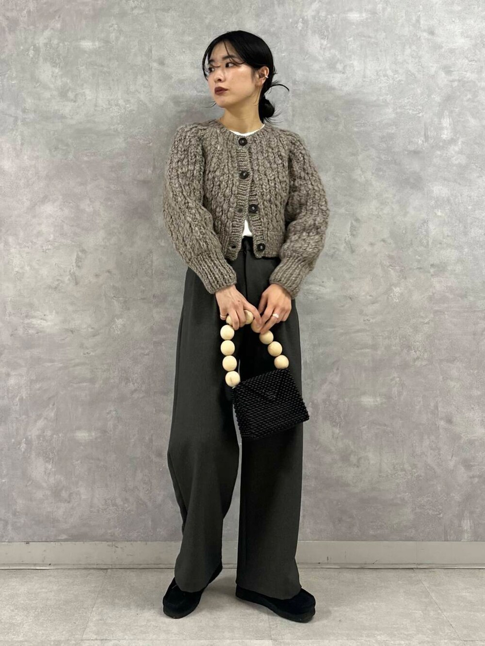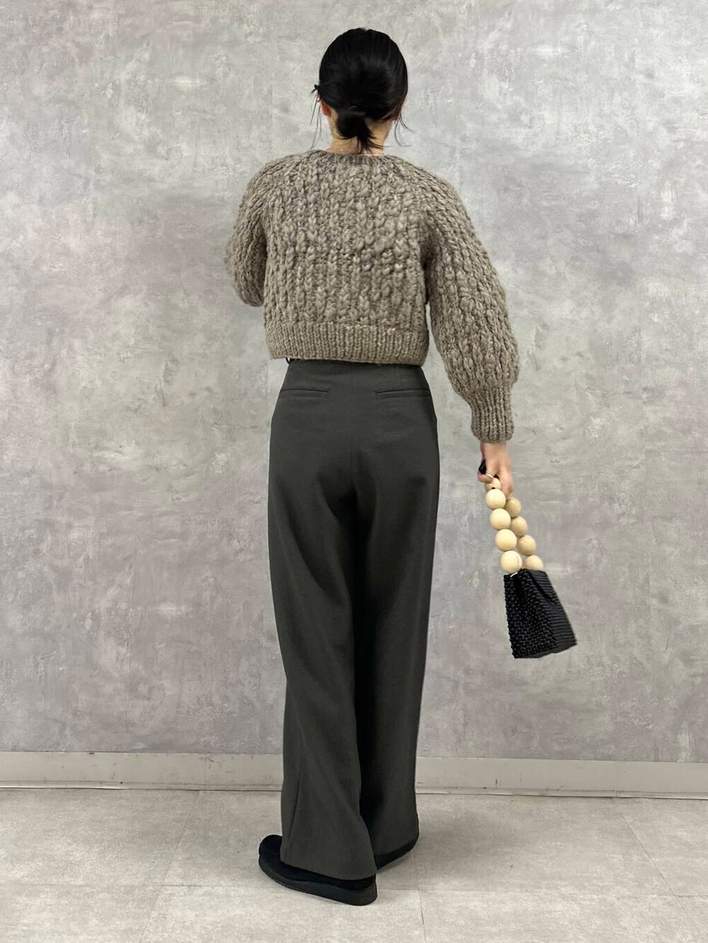 大きなボタンとざっくりとした網目、トレンド感のあるショート丈のカーディガンは一枚羽織るだけでぐっと旬のスタイリングになりおすすめです。