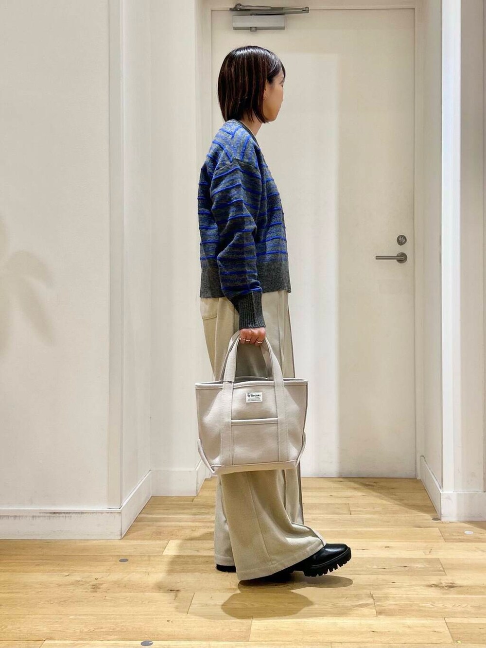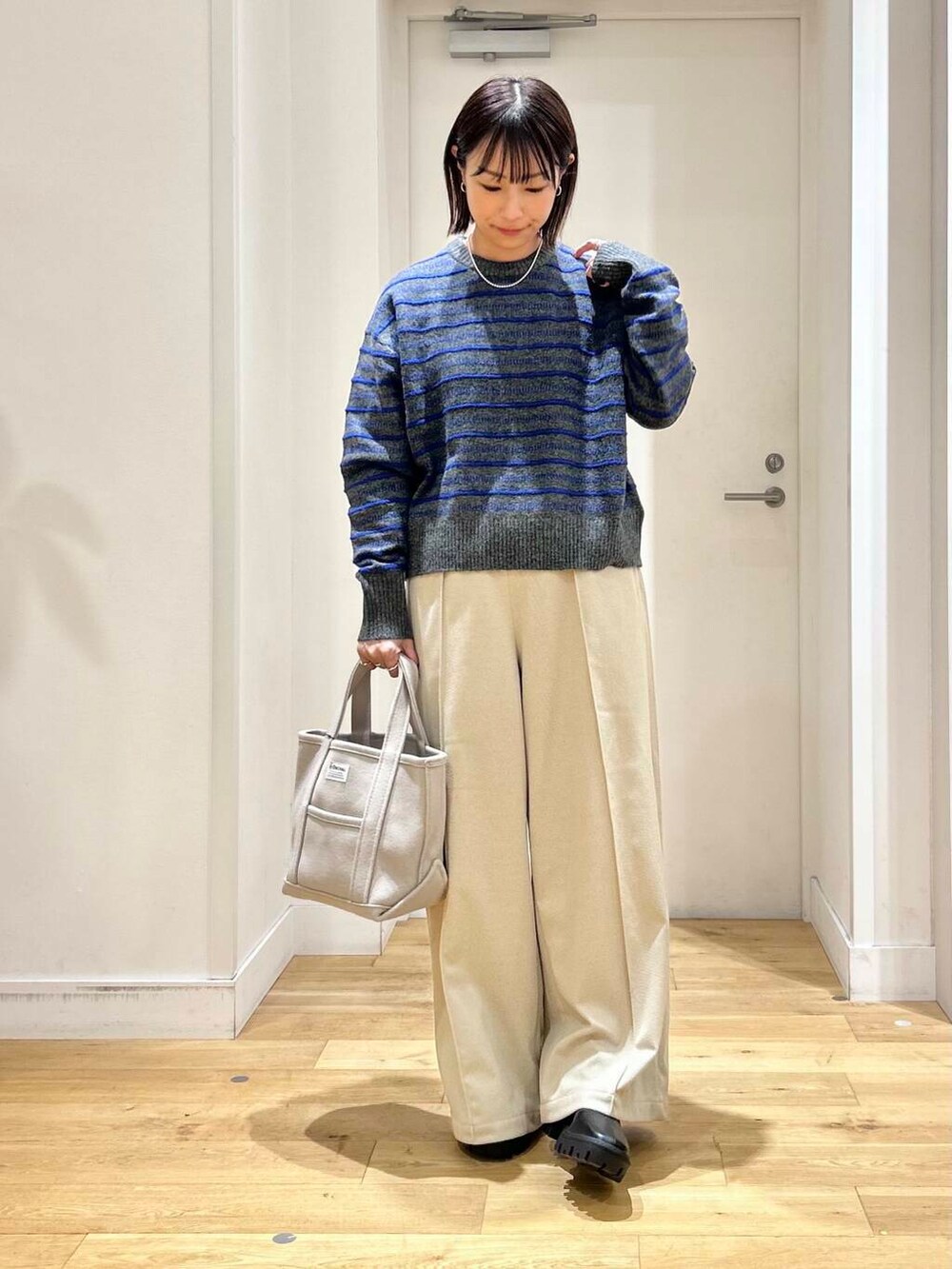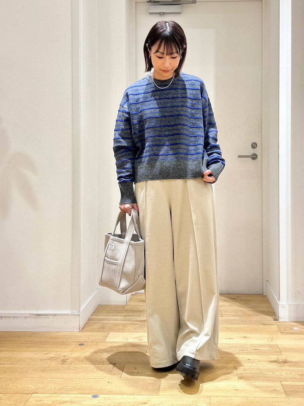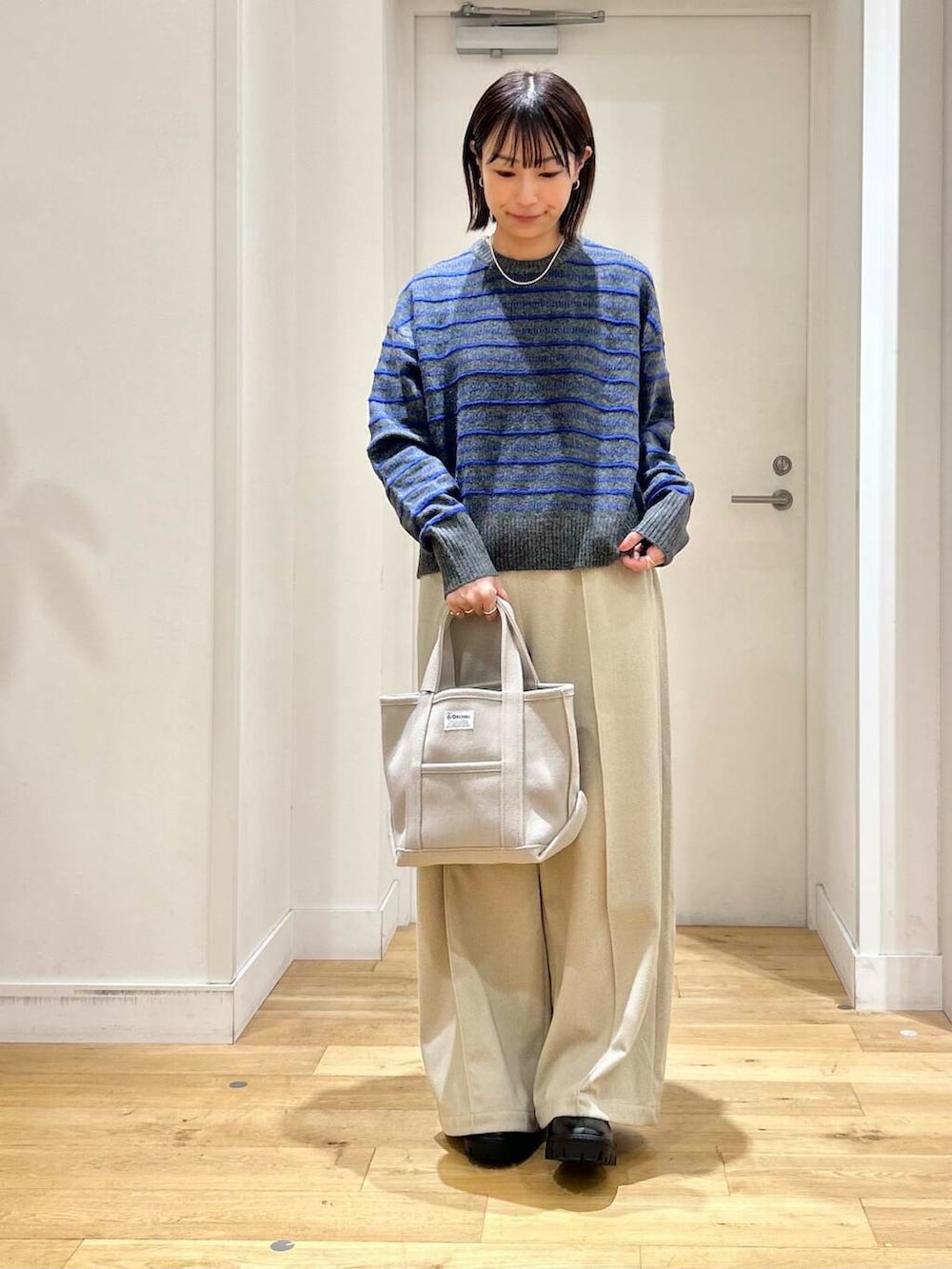 ニットは、立体的なボーダーや、グレーとブルーの配色、短めの丈感など可愛いポイントが詰まったアイテム!!