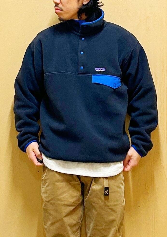 温かく丈夫な中厚のリサイクル・ポリエステル・フリース素材を使用した、パタゴニア定番のスナップT・プルオーバー