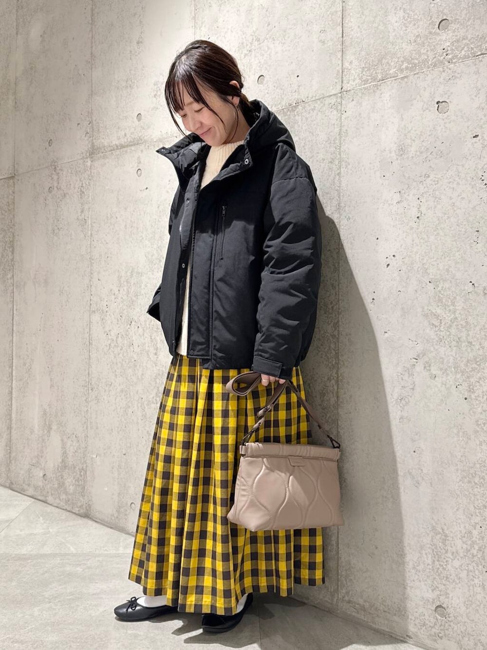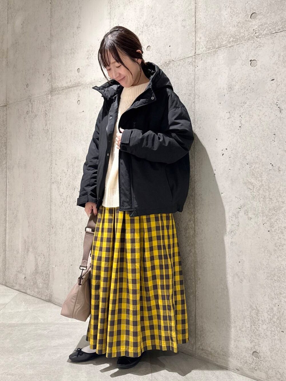 今回は、チェック柄のスカートを合わせた、大人カジュアルコーディネートです。