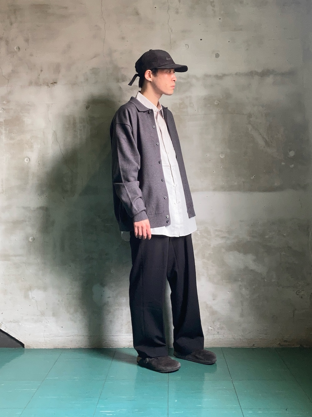 200日ニットのカーディガンは肌触り良くモチモチでまさに1年中着たくなる着心地です。