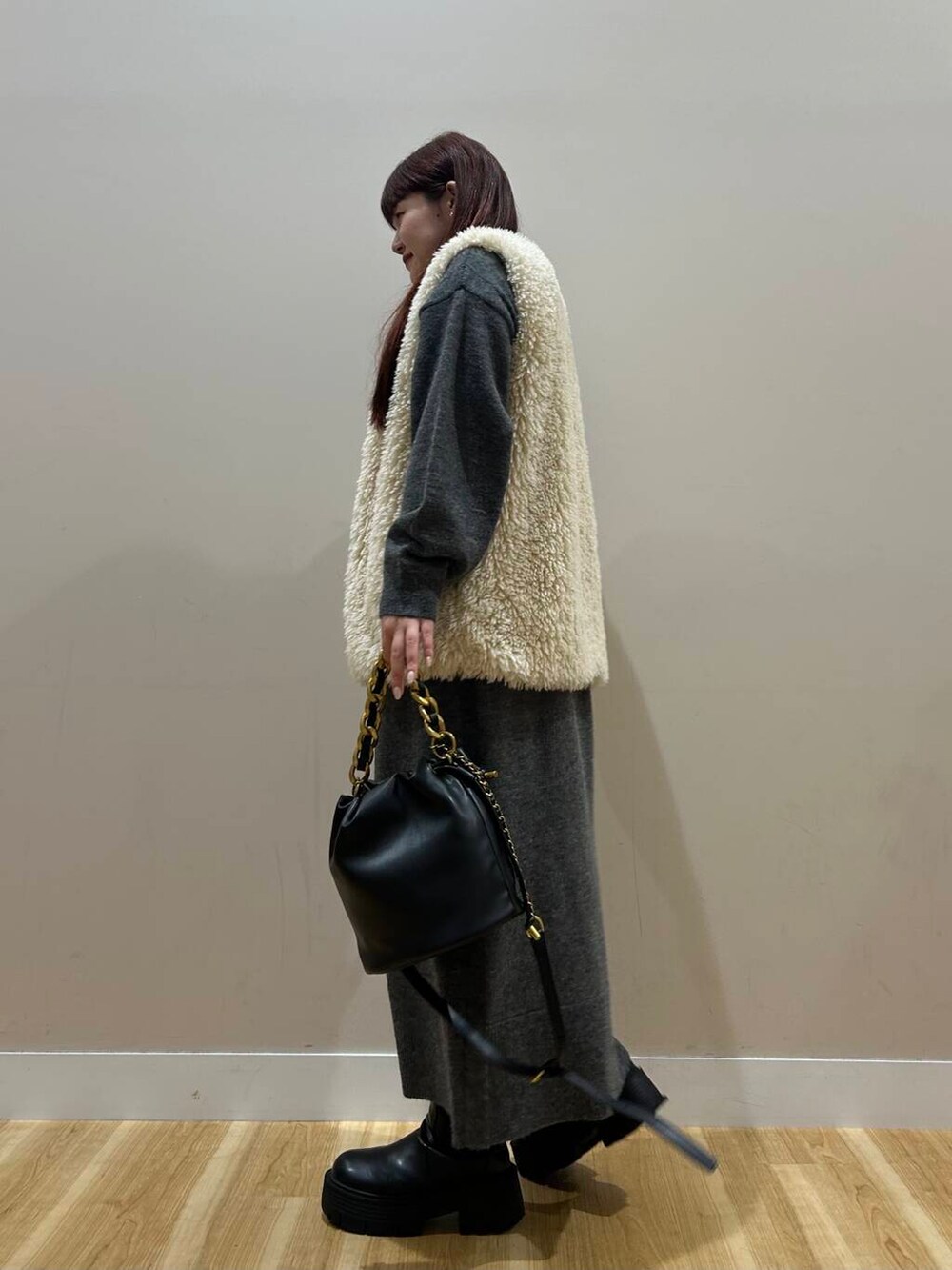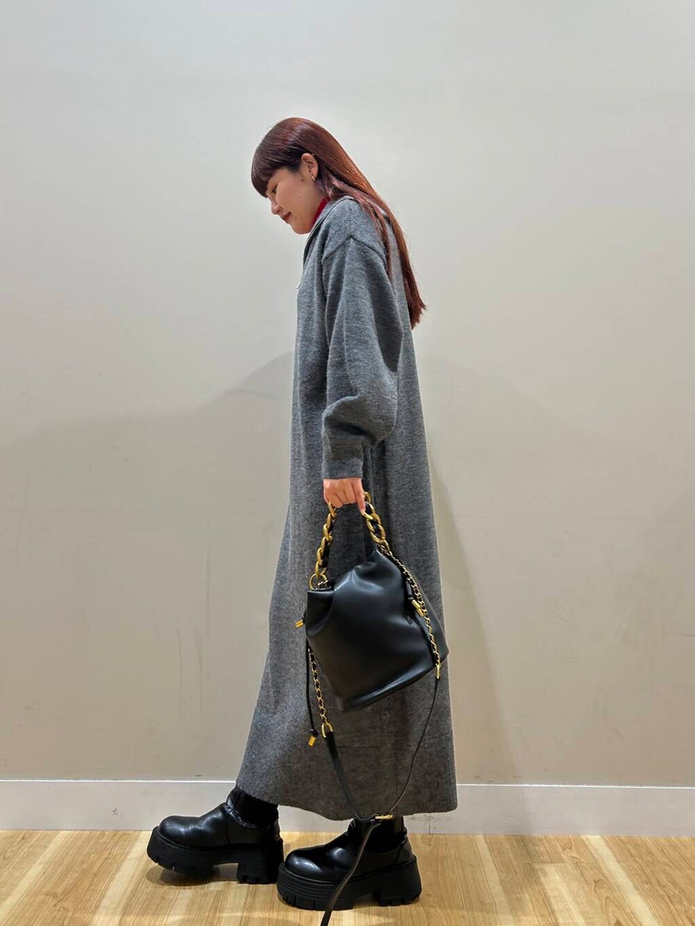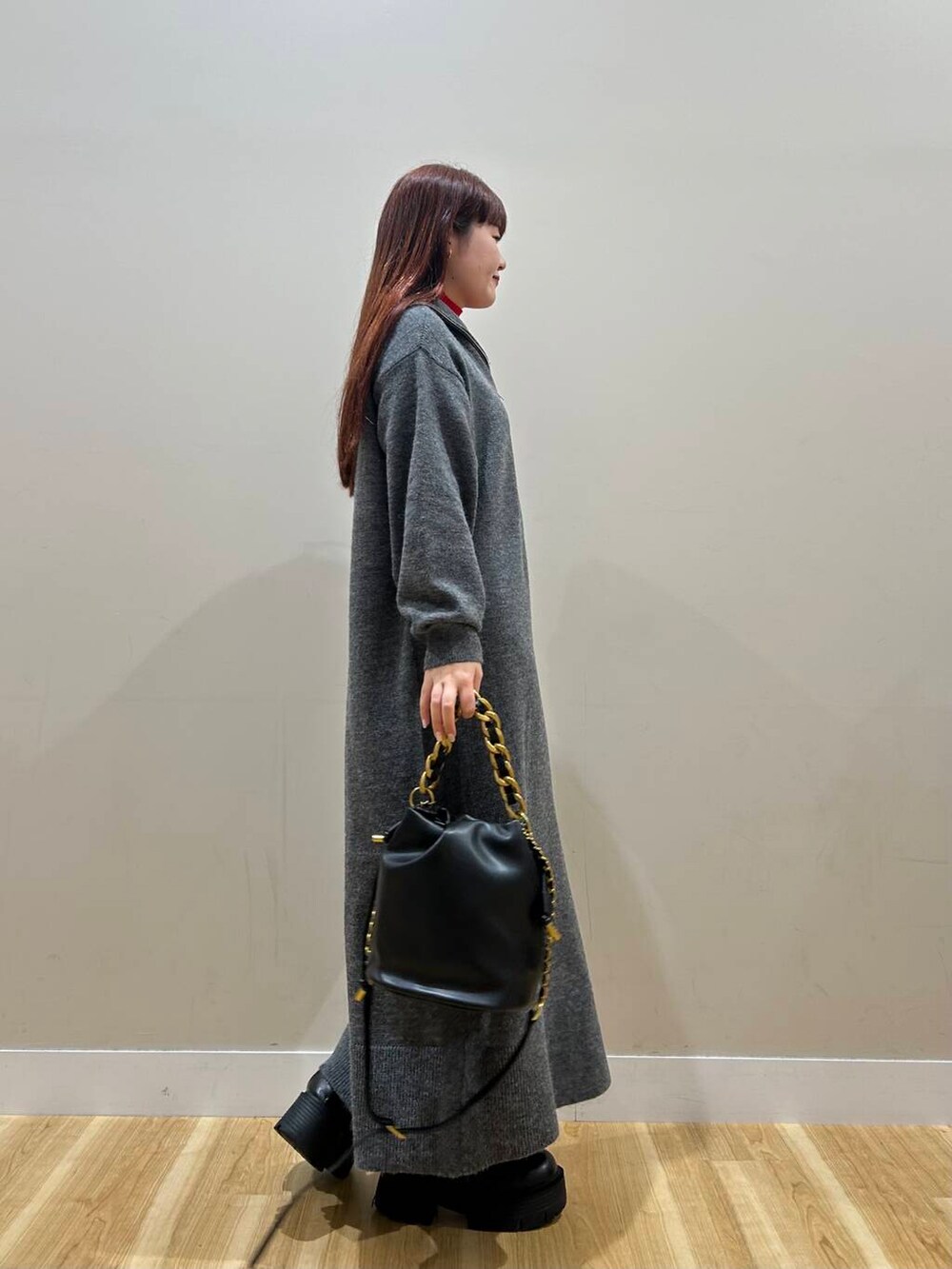 ハーフジップのワンピースは丈感しっかりあるので暖かく着用いただけます^^