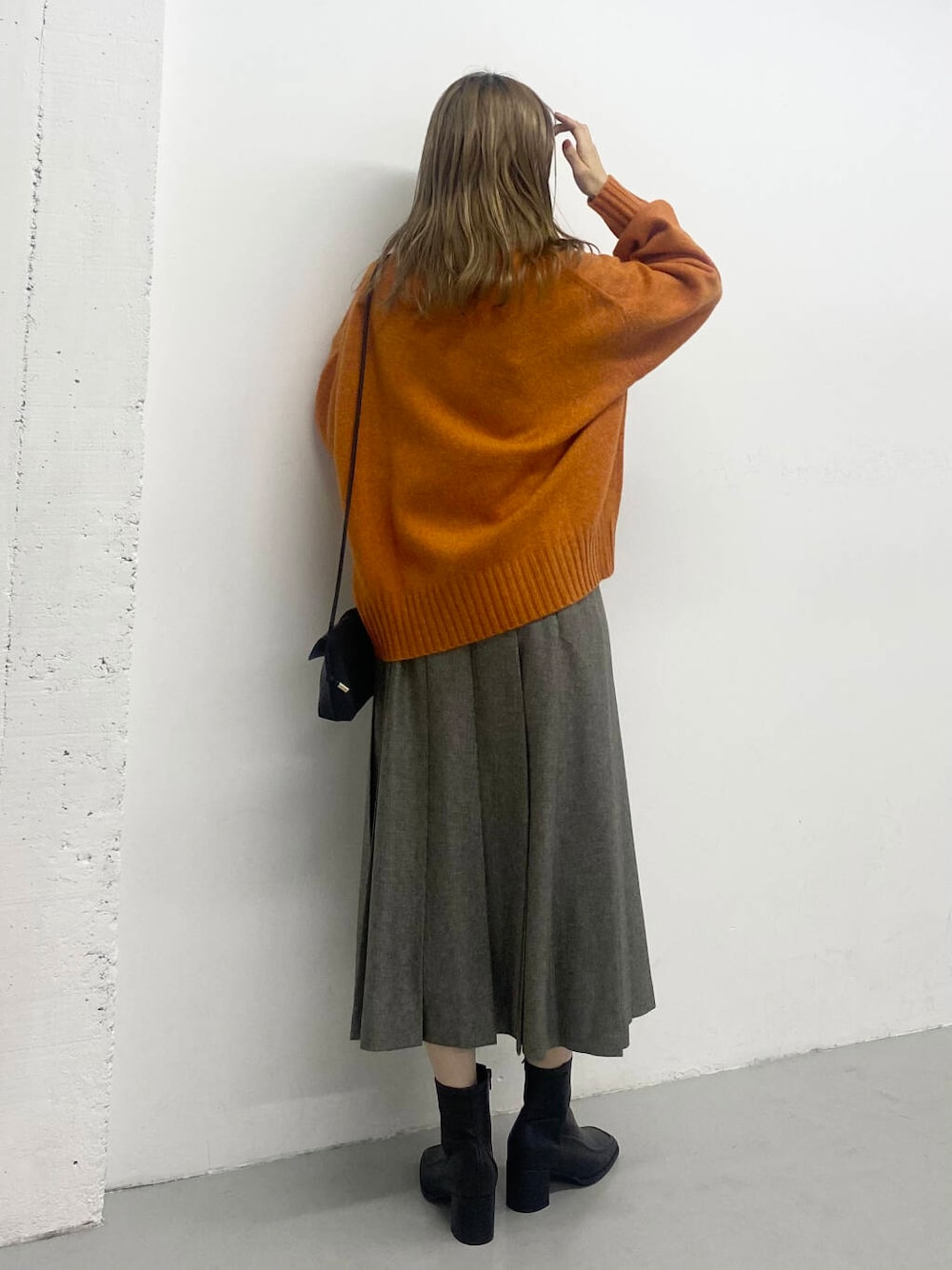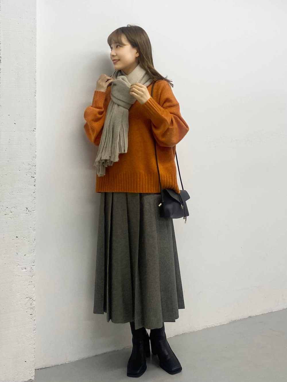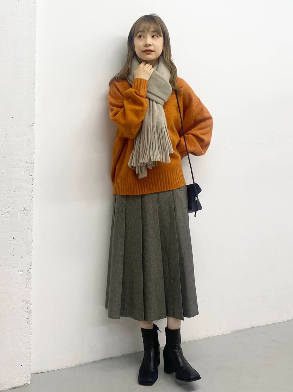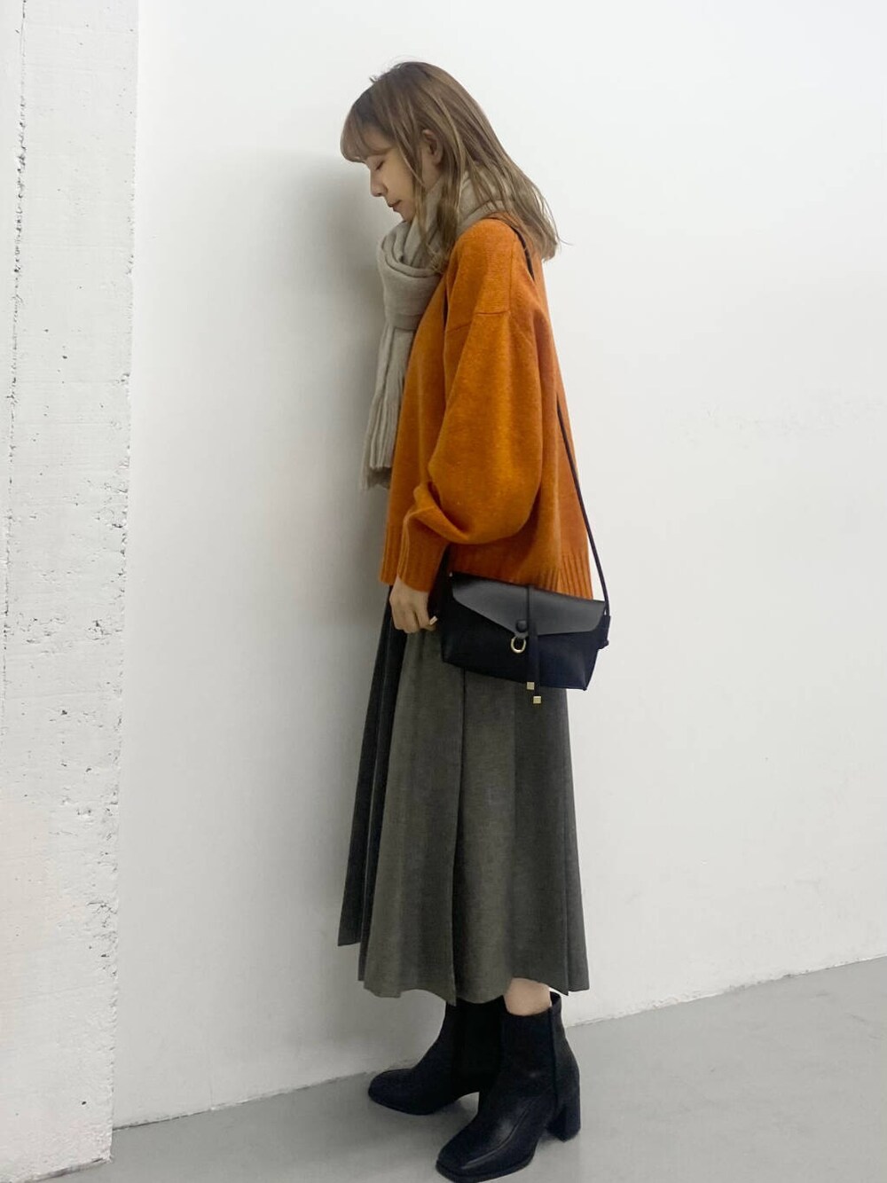 オレンジのニットが主役!