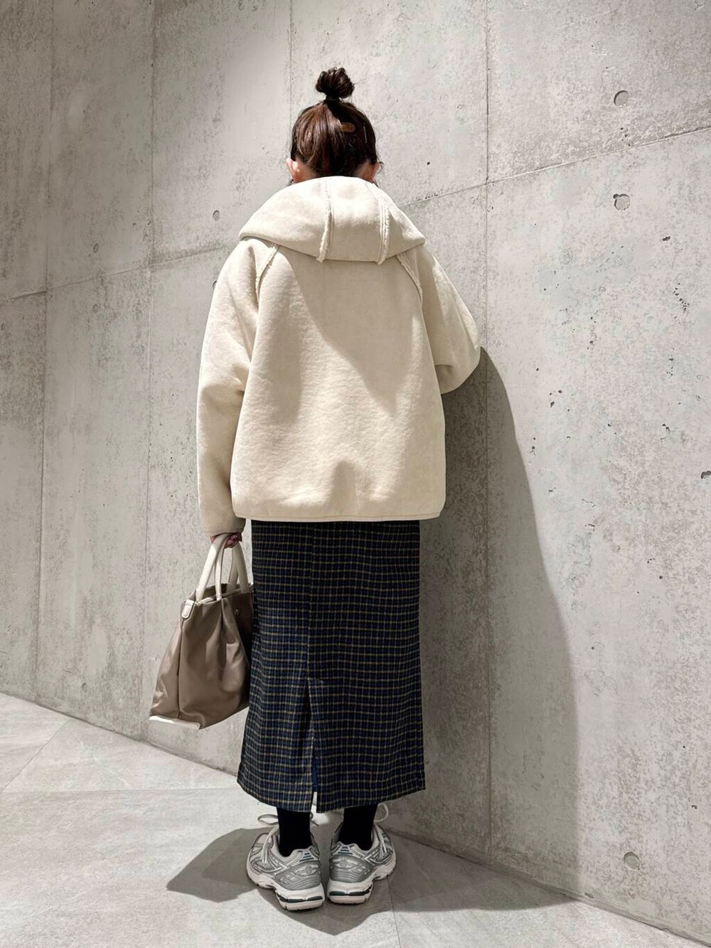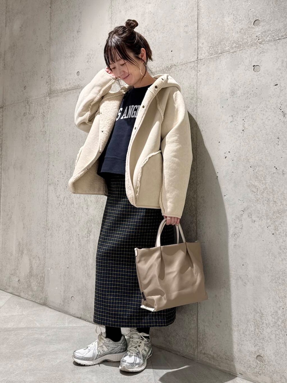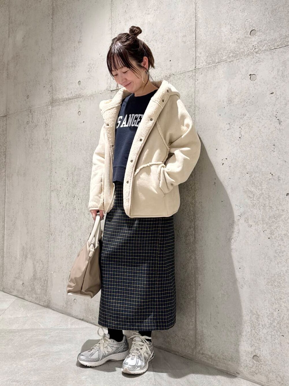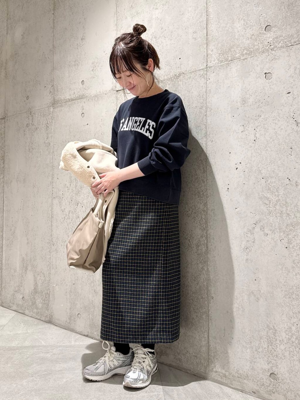 今回は、スウェットに、チェック柄のスカートを合わせた、大人カジュアルコーディネートです。