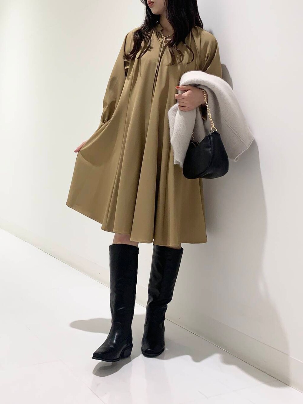 ロング丈が好きな私は普段ミニワンピースは着ませんがロングブーツと合わせると抵抗感が少なく