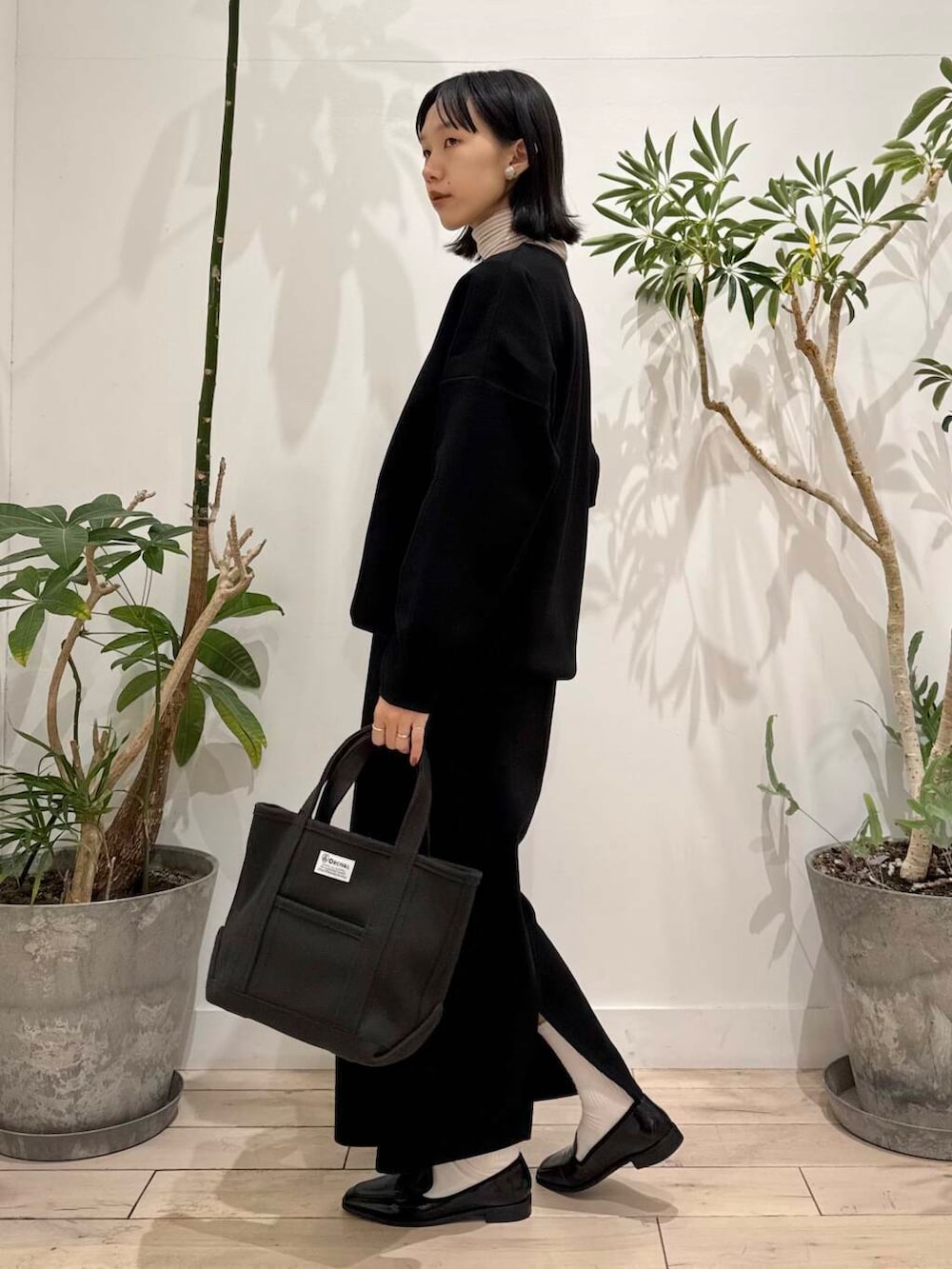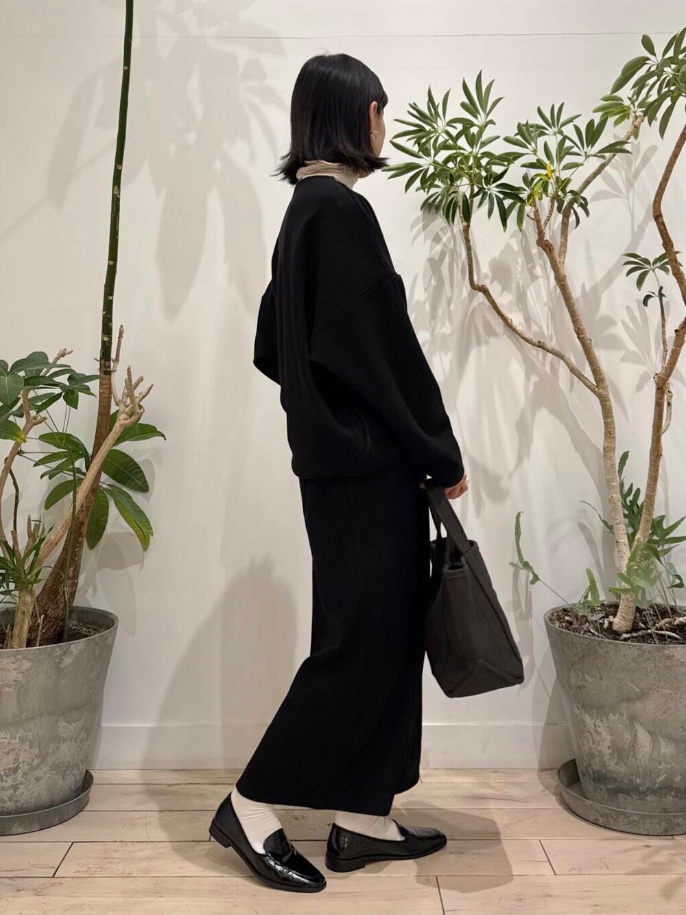 ウールが入っていないのに、ウールのような素材感で季節感出ます◎