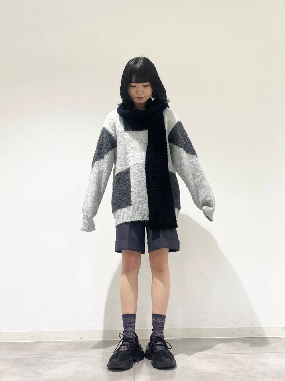 ゆったりニットと組み合わせて、ニットの柄が見えるのも可愛い着方です。