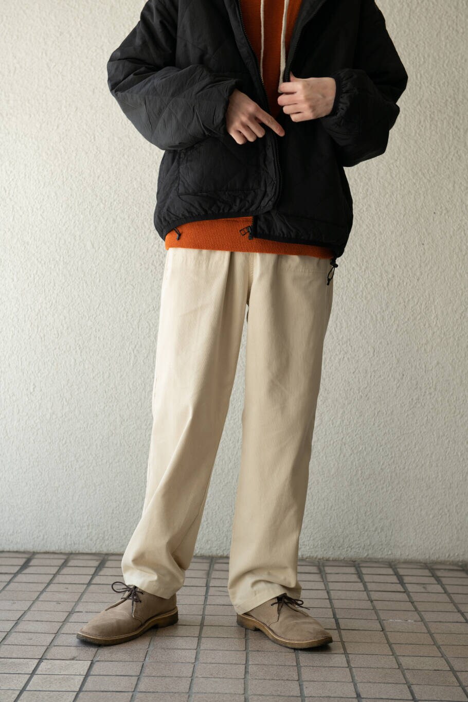 Sonny Labelよりキルティングスタンドカラーブルゾンを使ったスタイリングになります。