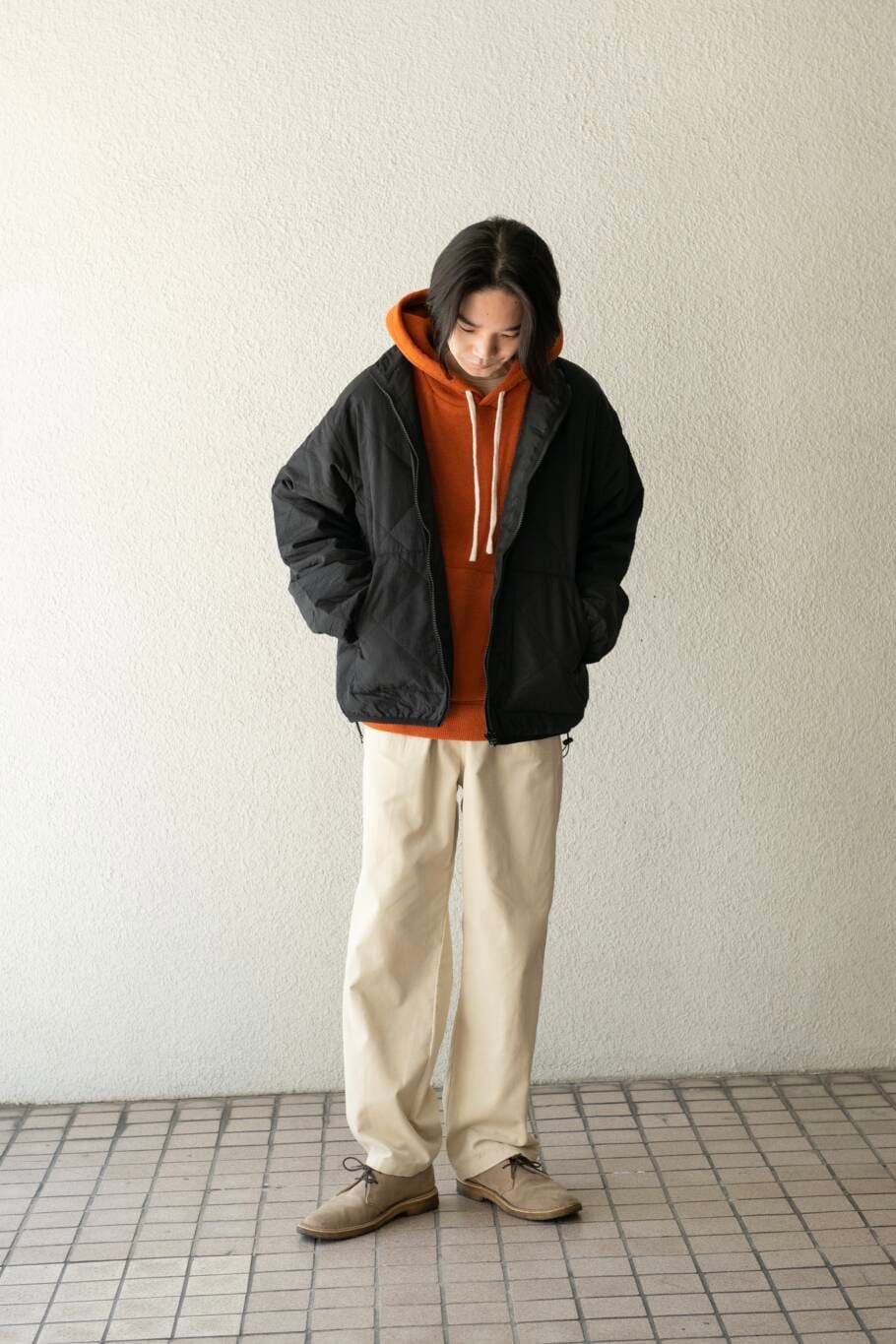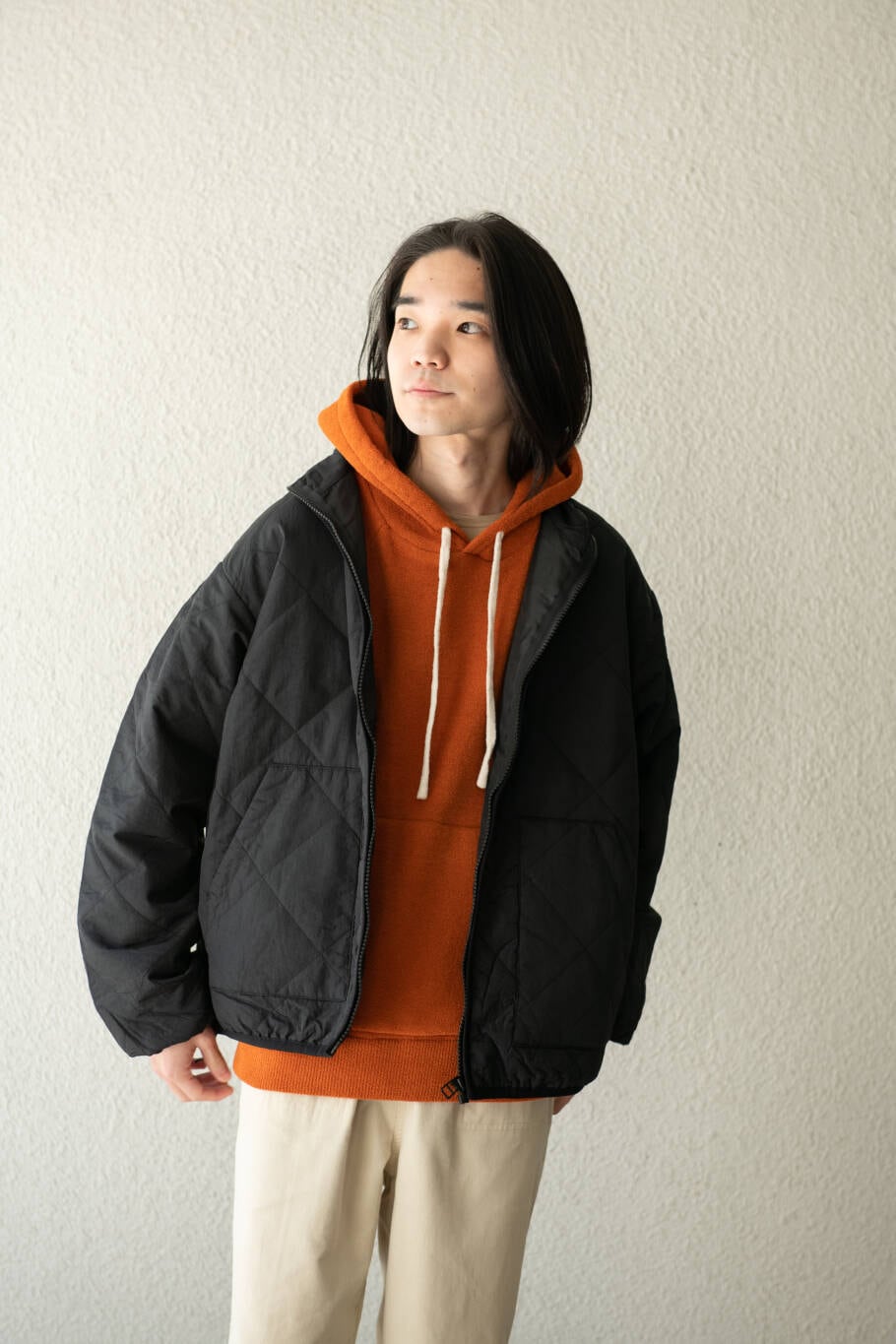 着丈もドローコードで調節いただければインナーとのレイヤーもしてもらいやすいです。