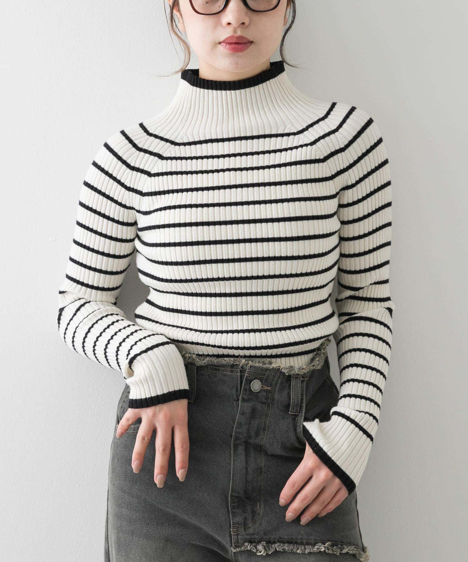 SENSE OF PLACEストレッチリブハイネックセーター- カラー: